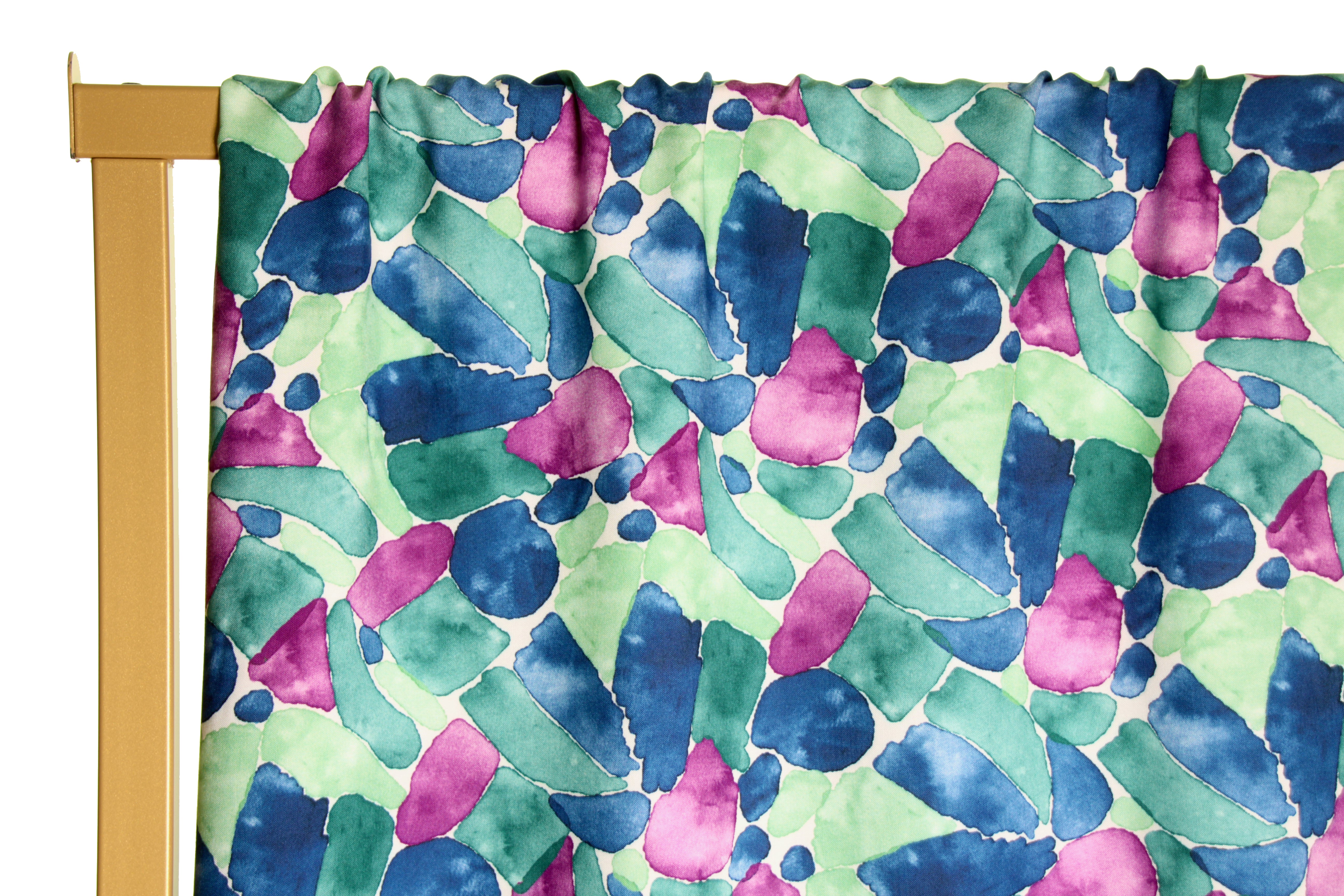 A soft green viscose with abstract flowers in blue, green and purple. This fabric is perfect for blouses, dresses, skirts...