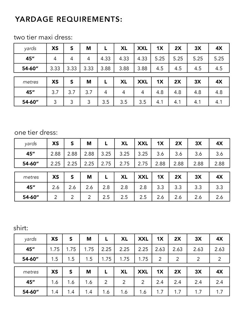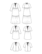 The Wilder Gown is a loose, flowy, tiered dress that can be sewn up in a bunch of different ways! It has raglan sleeves and ties up at the neck. It is easy to sew and is perfect for drapey woven fabrics. The Wilder Gown can be made as a top or dress, long or short sleeved, with one skirt tier or two. The design is fairly modular so it is easy to customize to your vision! Sizes XS - 4X | Easy to sew | Designed for woven fabrics