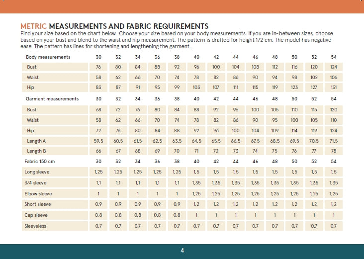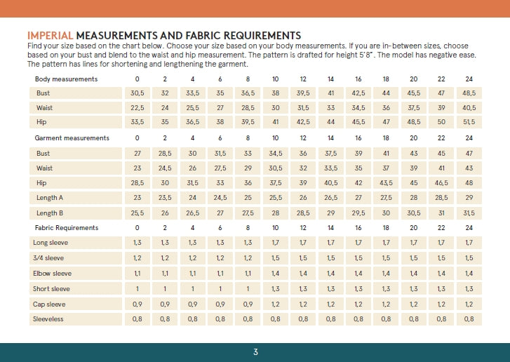 Tulip summer top sewing pattern has dropped shoulders with cuffed sleeve openings. The small collar band is sewn to a gathered neckline and the hem is curved. The blouse has a slit and a snap or button at the center back neckline. The Tulip summer top PDF sewing pattern is designed for woven fabric. Size range US 0-24 & EU 30-54. Height 5'8" 172 cm.