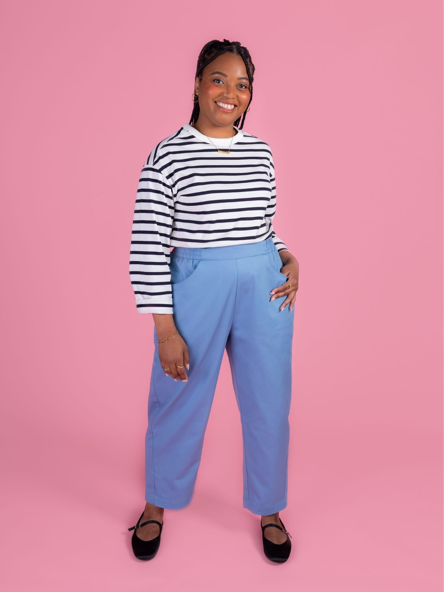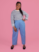 Winnie is the trouser pattern your wardrobe’s been waiting for. With a modern barrel leg shape, high waistline, and no-fuss elasticated waistband, Winnie is perfect for beginners and beyond looking for a simple, satisfying sewing project. Throw in handy pockets and you’ve got a wardrobe staple you’ll wear on repeat.