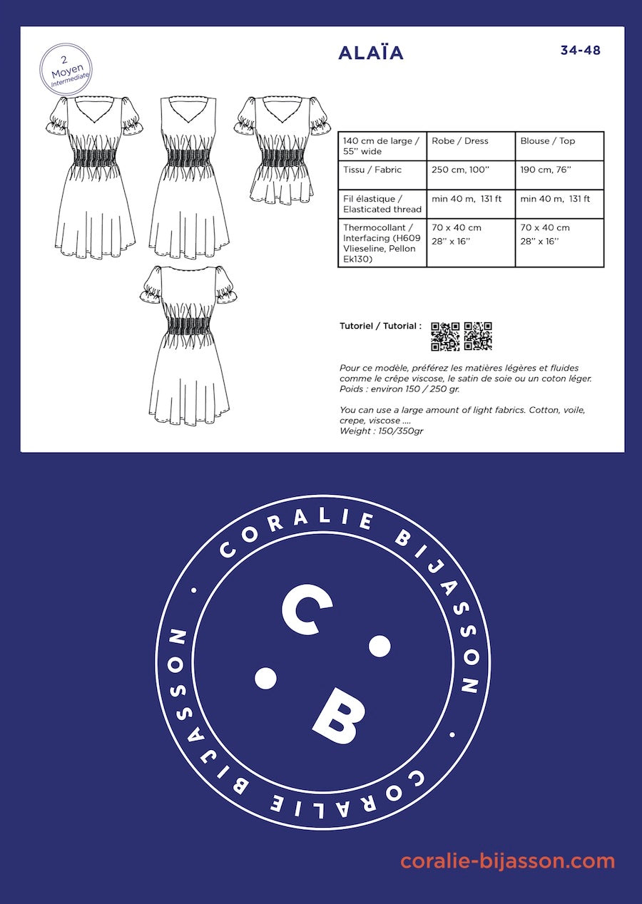 Alaïa is a light, feminine summer pattern that gently shapes the silhouette with waist shirring.