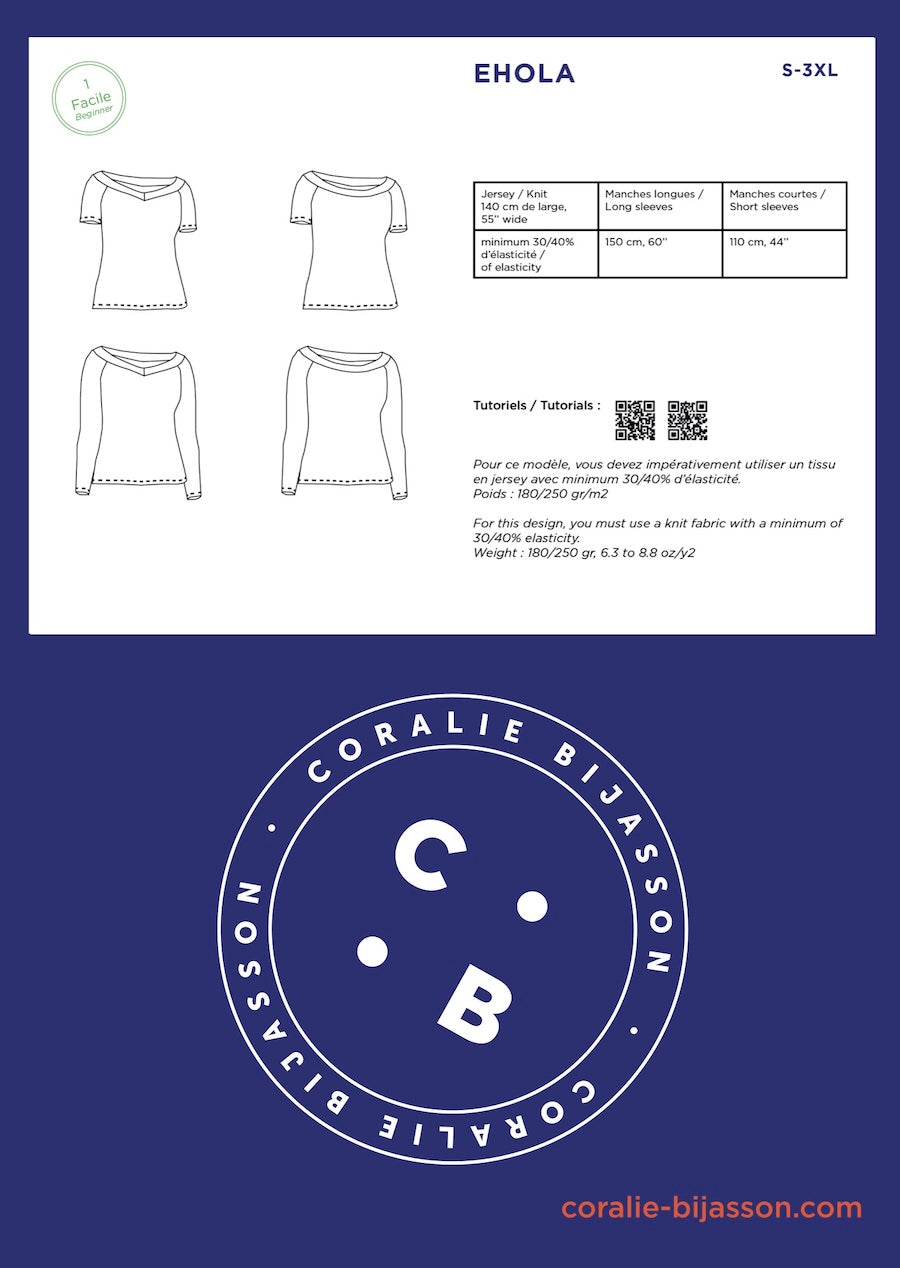 Perfect for beginner sewists, this pattern is designed to be sewn with or without a serger. Be sure to use a jersey with at least 40% stretch to achieve a good drape, especially around the shoulders.