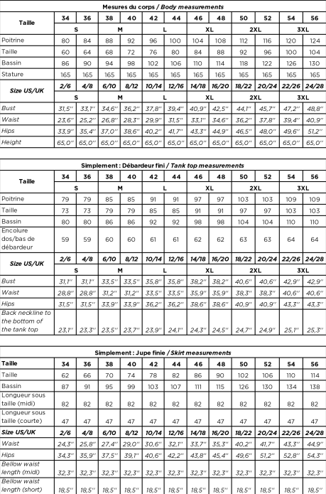 Available in sizes S to 3XL, it is best sewn in a light to medium-weight jersey, between 150 and 300 g/m² (4.4–8 oz/yd²).
