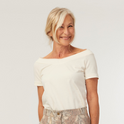 Ehola is a timeless T-shirt with a clean, feminine silhouette, available in 4 variations: scoop neckline or V-neck, short or long sleeves. Its flattering cut enhances the neckline while offering absolute comfort.