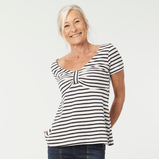 Whether you aspire to craft an elegant dress or a casual t-shirt, express your own style with this easy and feminine pattern.