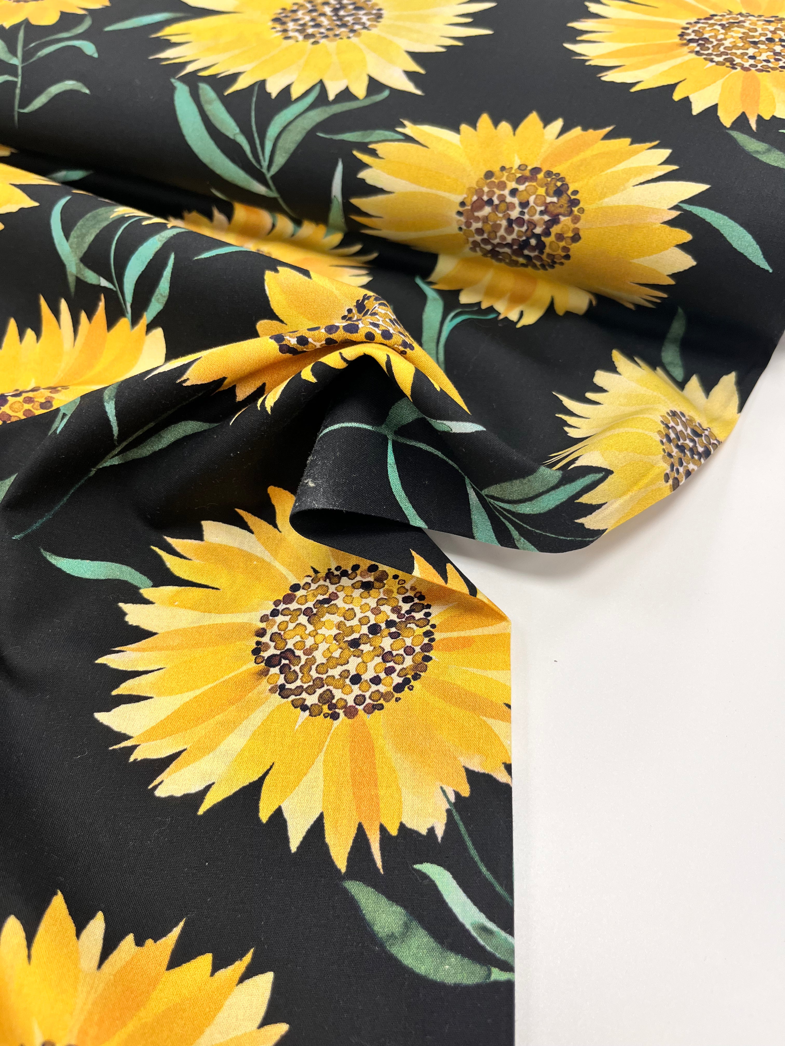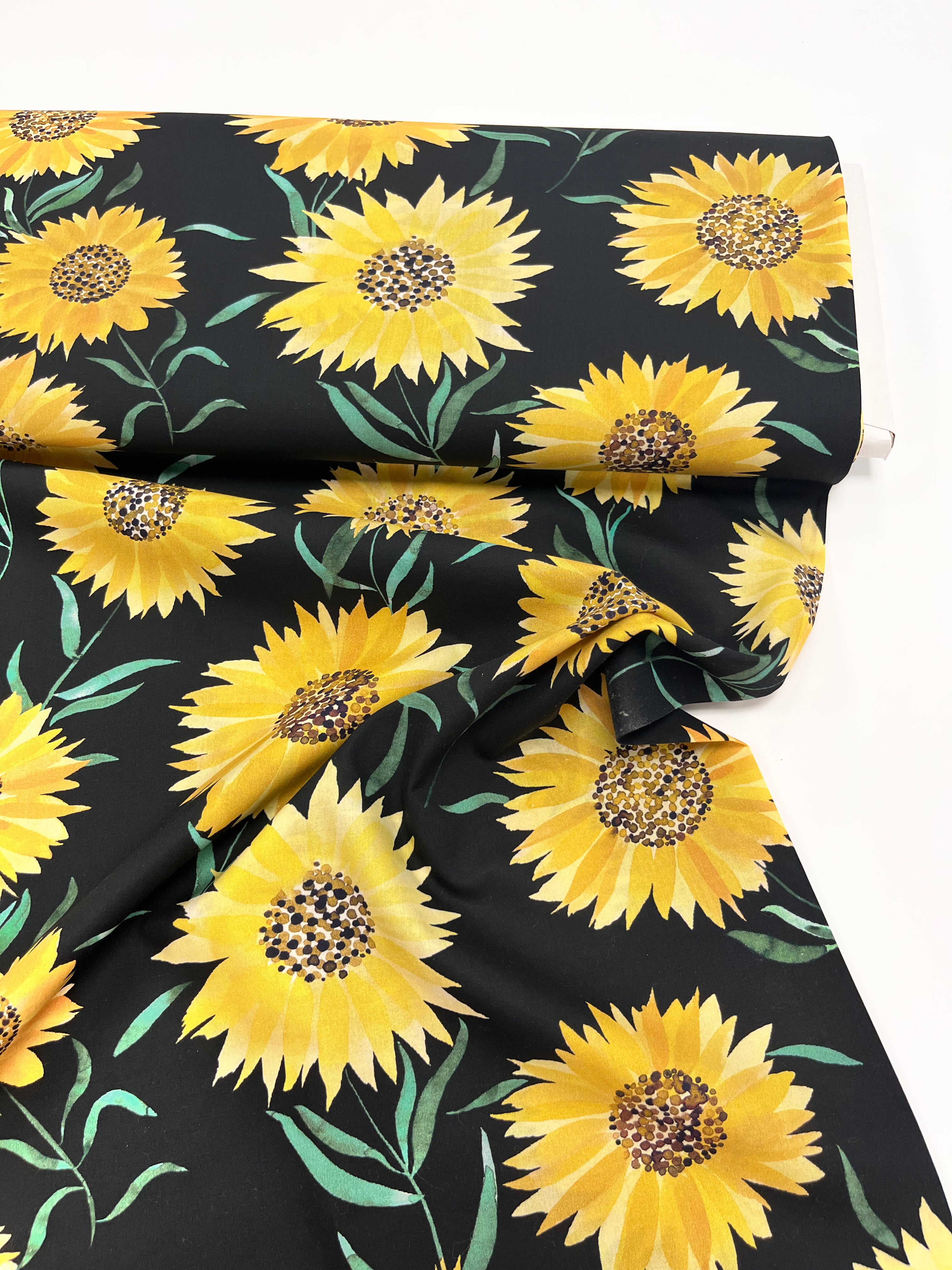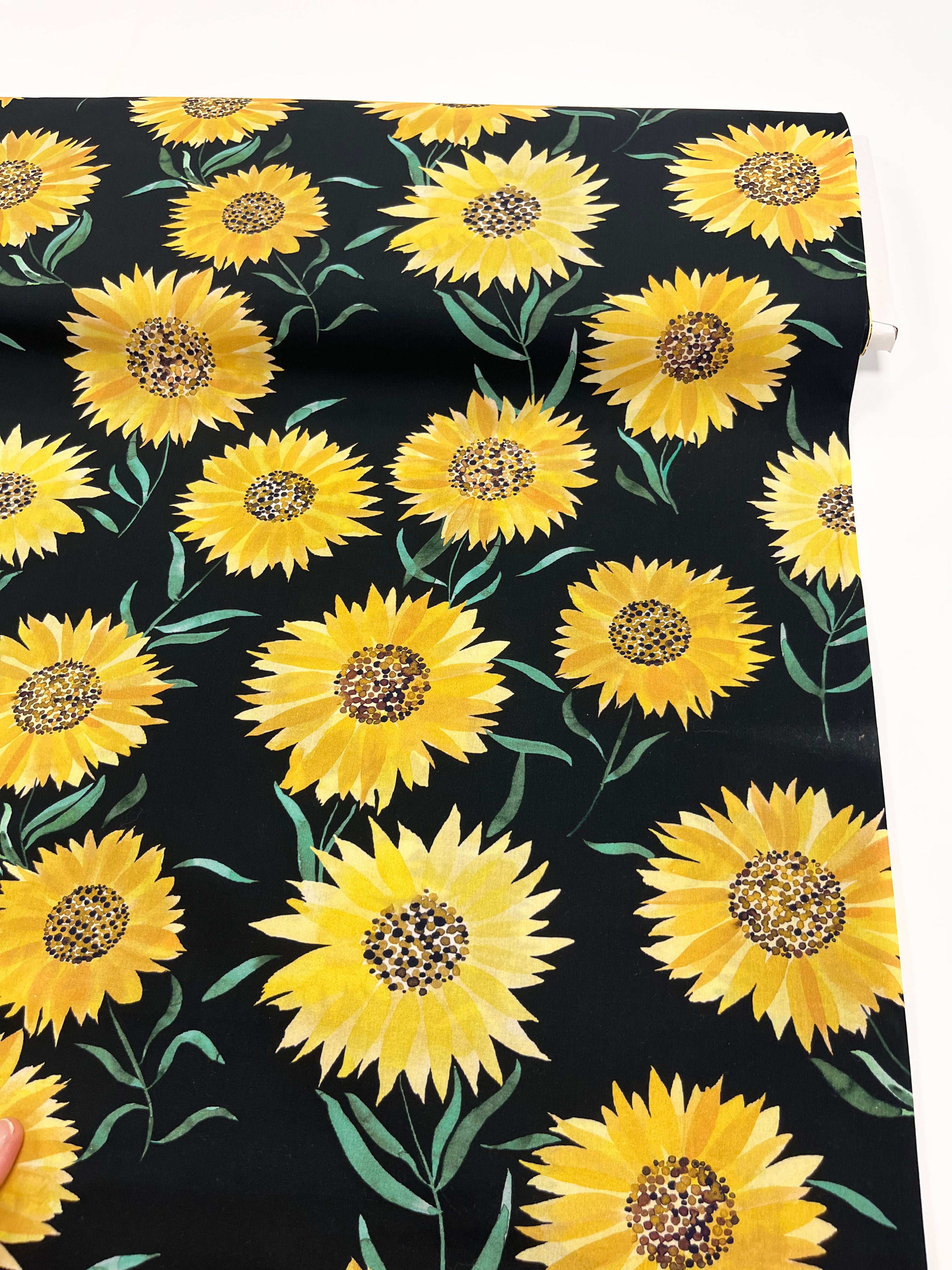 REMNANT | Sunflowers | Fine Poplin | Black | 2.7 mtr
