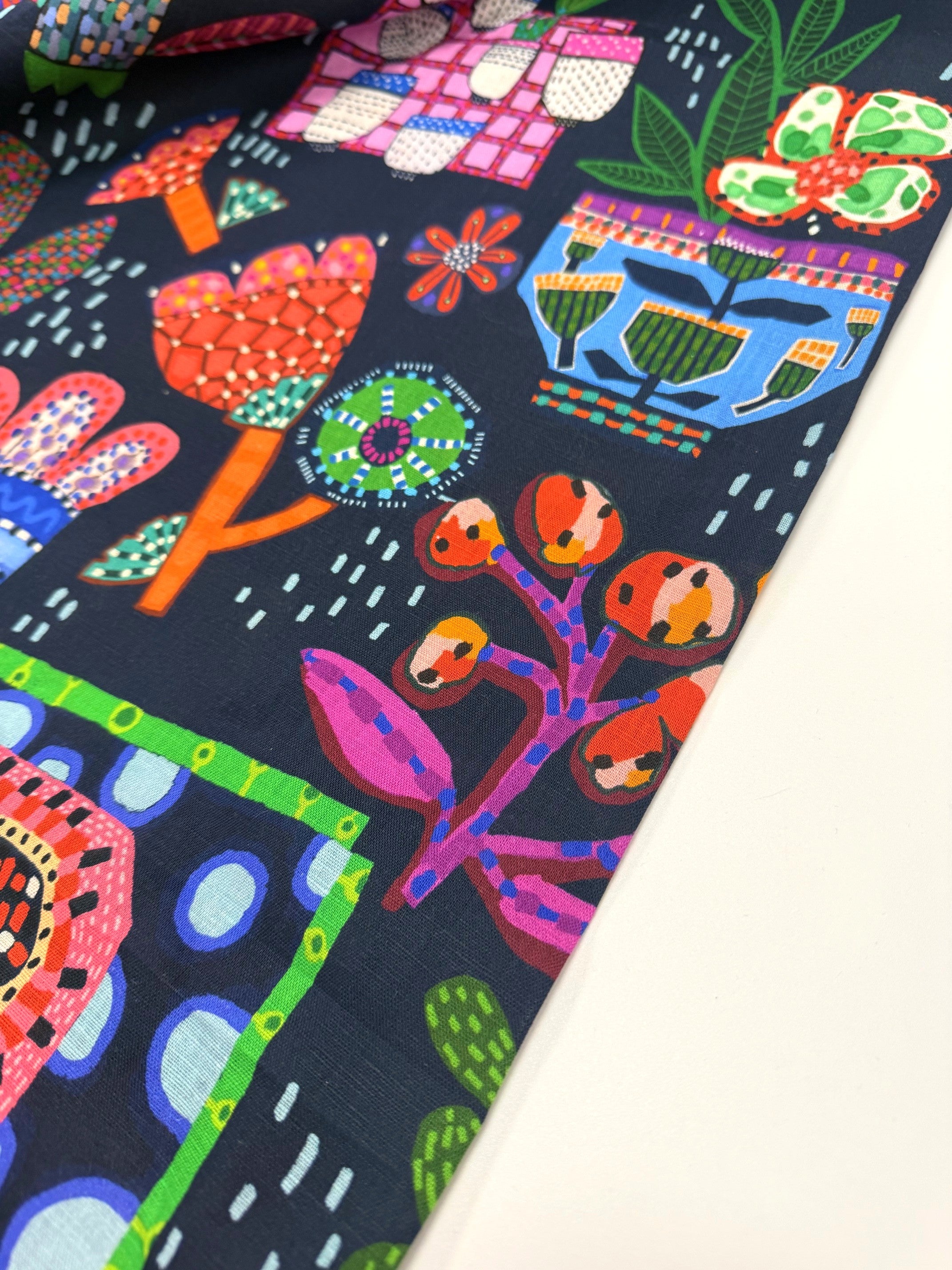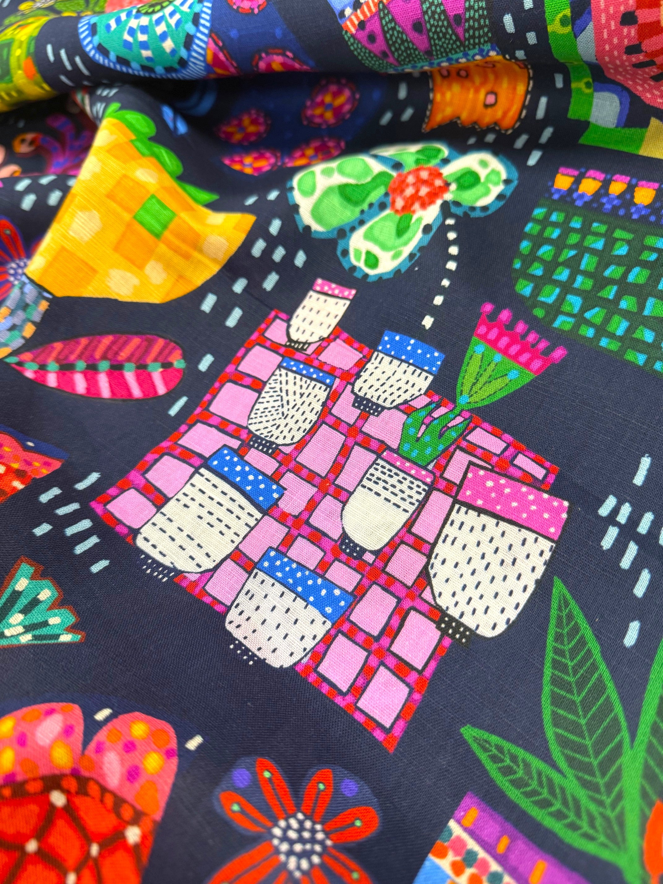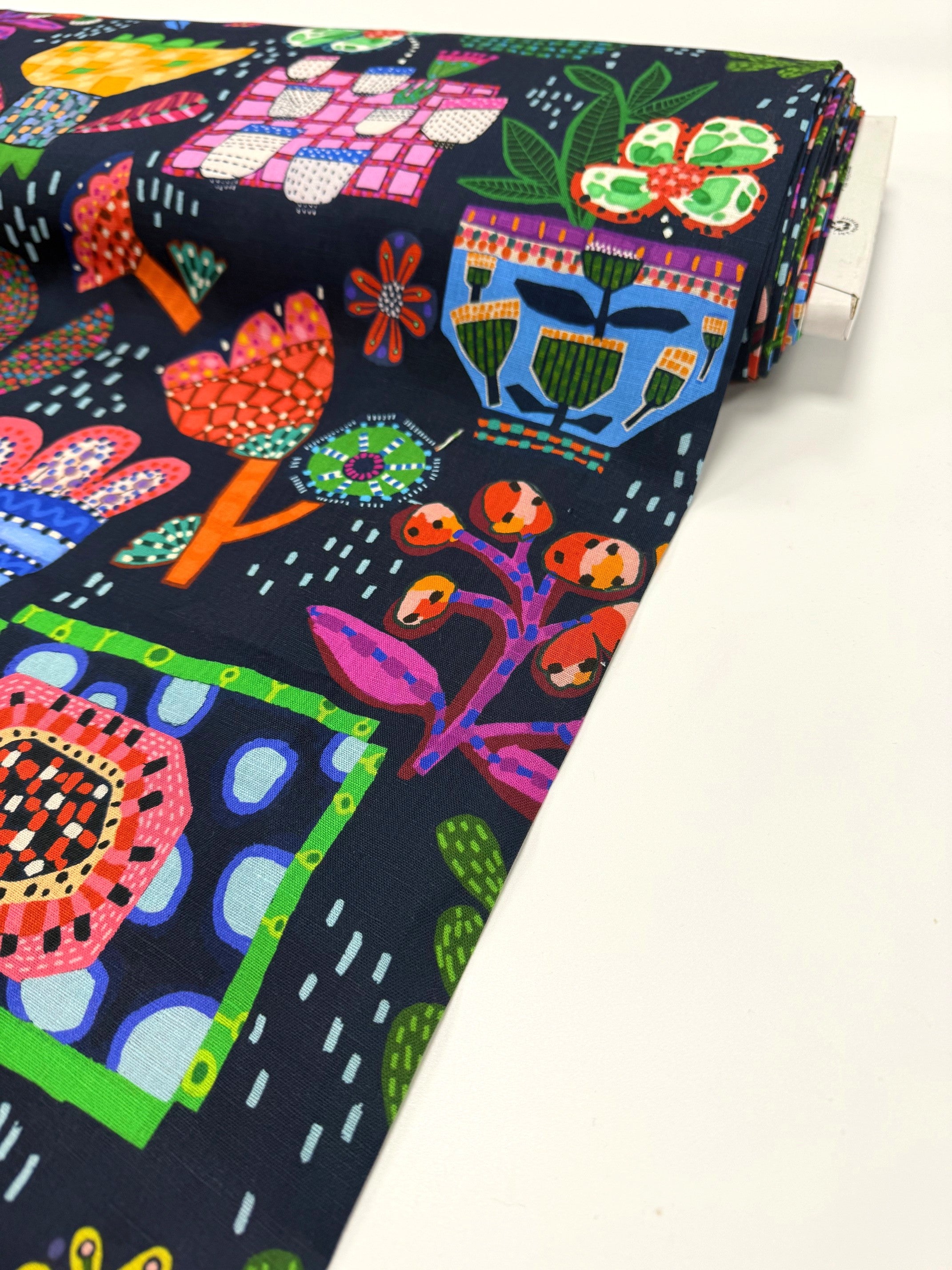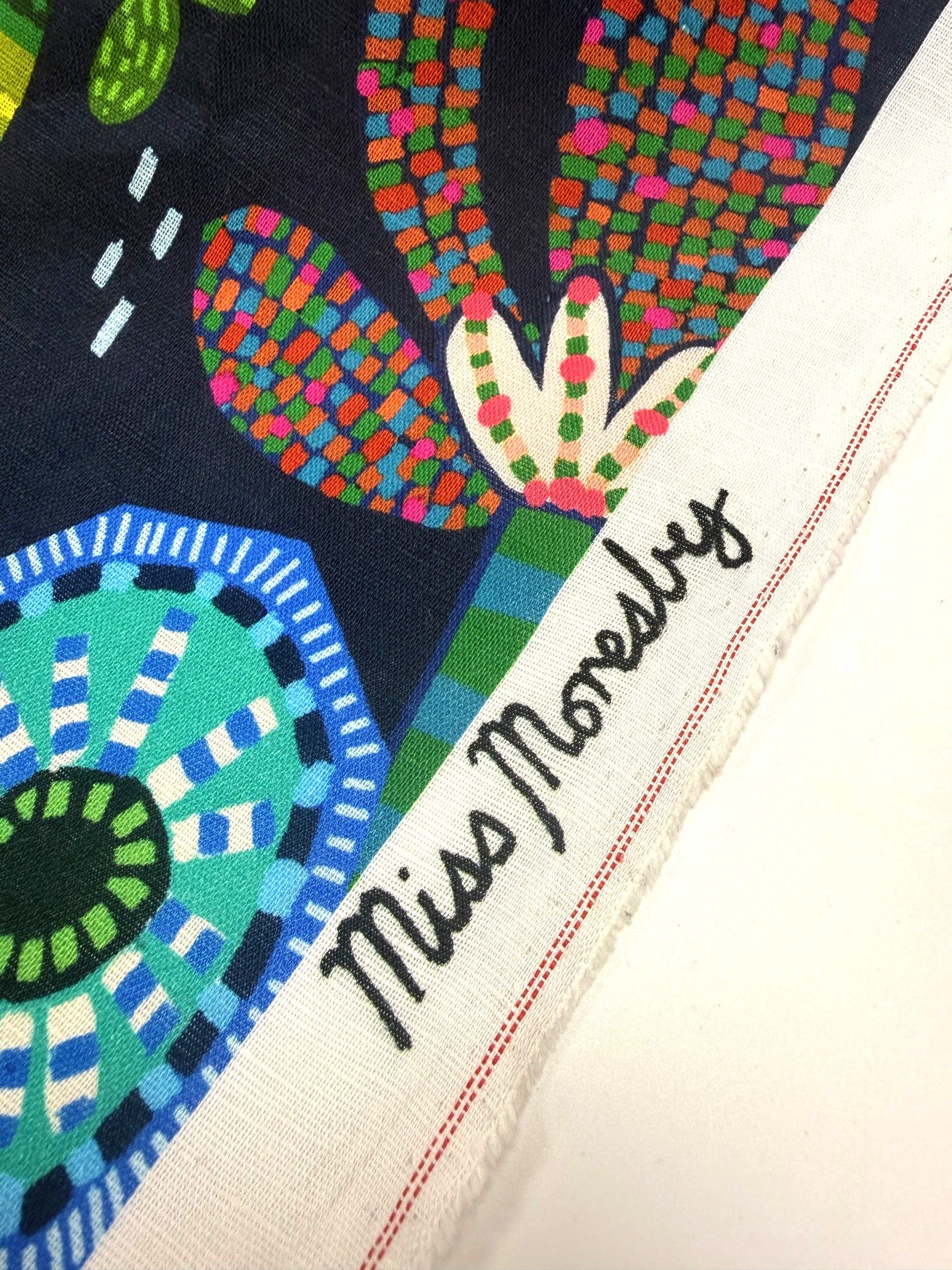 A great choice for the base of her rich print designs because it naturally absorbs and retains colour! Linen/cotton is a wise choice for those who love linen but would like it to be a little softer, the cotton portion adds softness whilst linen offers strength. Breathes well in summer, retains heat in winter.