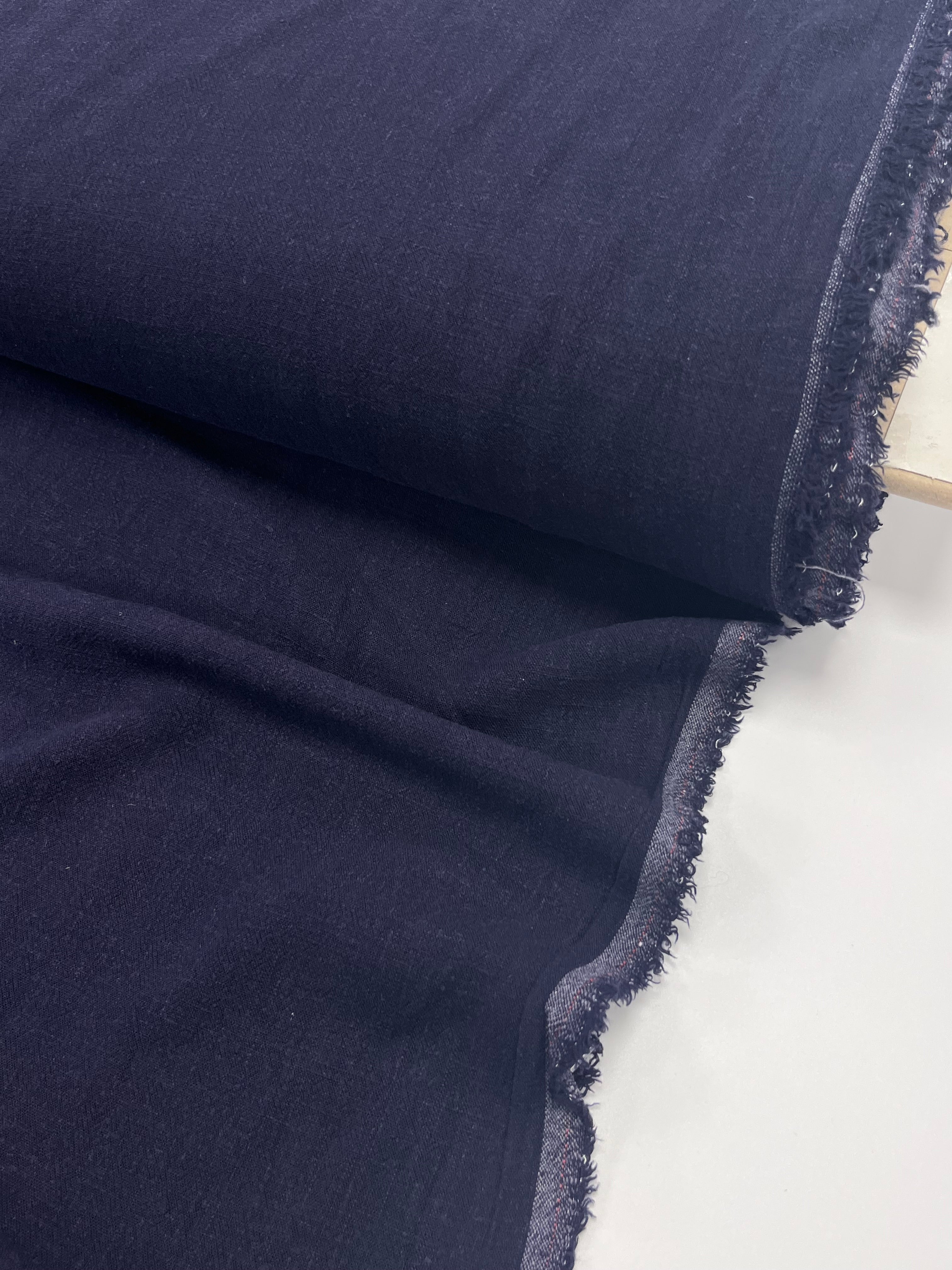 REMNANT | Linen Viscose Blend | Navy | Deadstock Fabric 1.2MTR