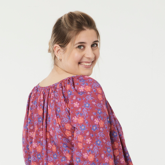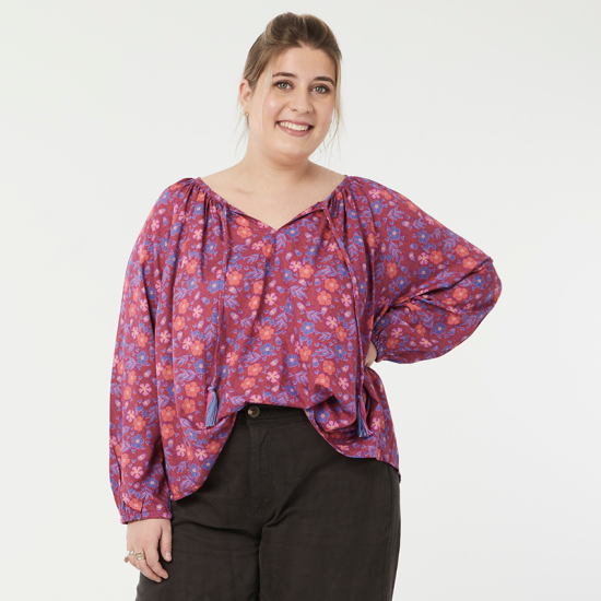 Elsa is a light, airy blouse with a gathered neckline and raglan sleeves, perfect for sunny days or dressed-up evenings. Choose from two neckline finishes: with or without a decorative plastron.