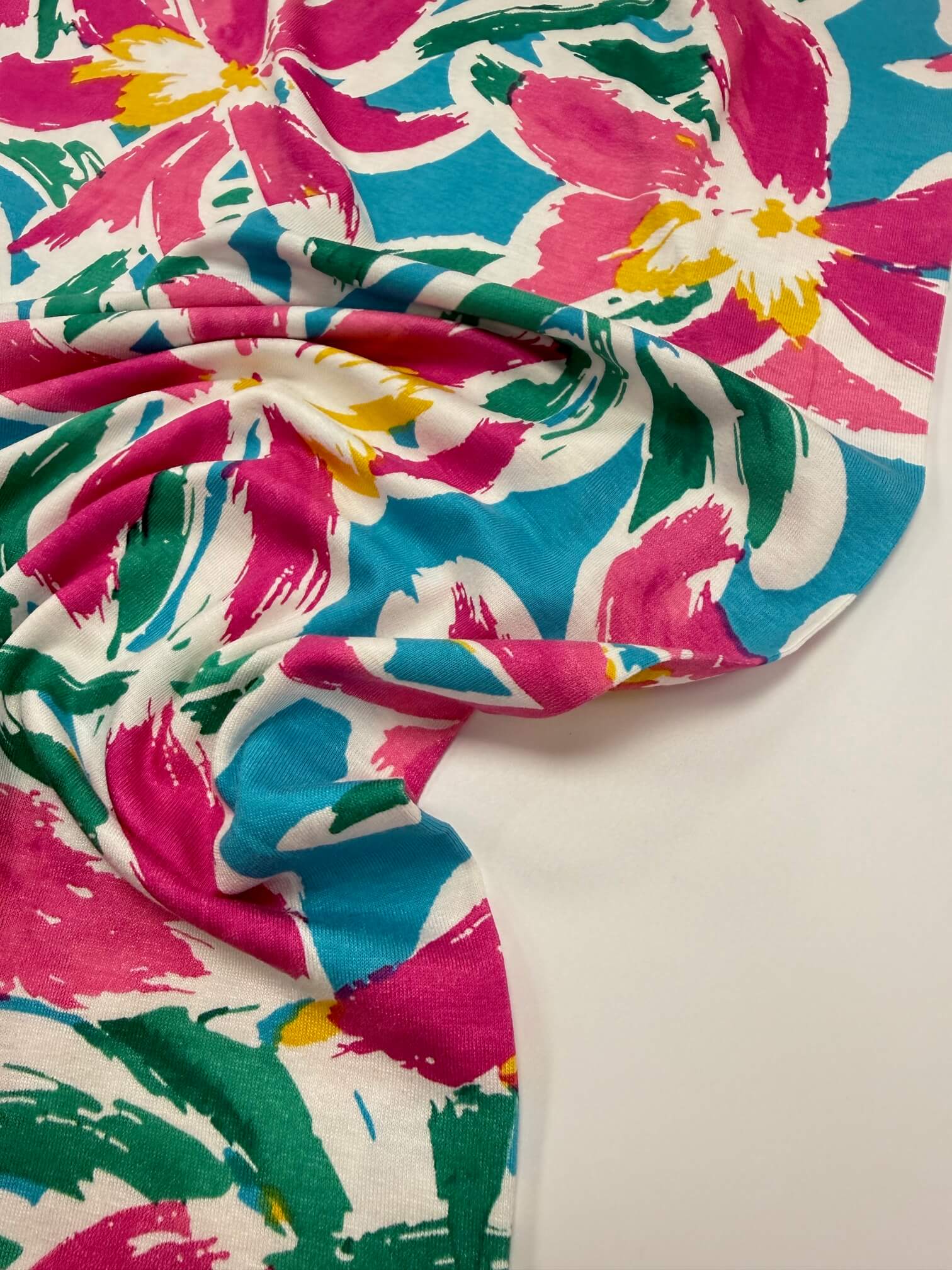 Brushstroke Bloom | Viscose Jersey | Tropical Pop