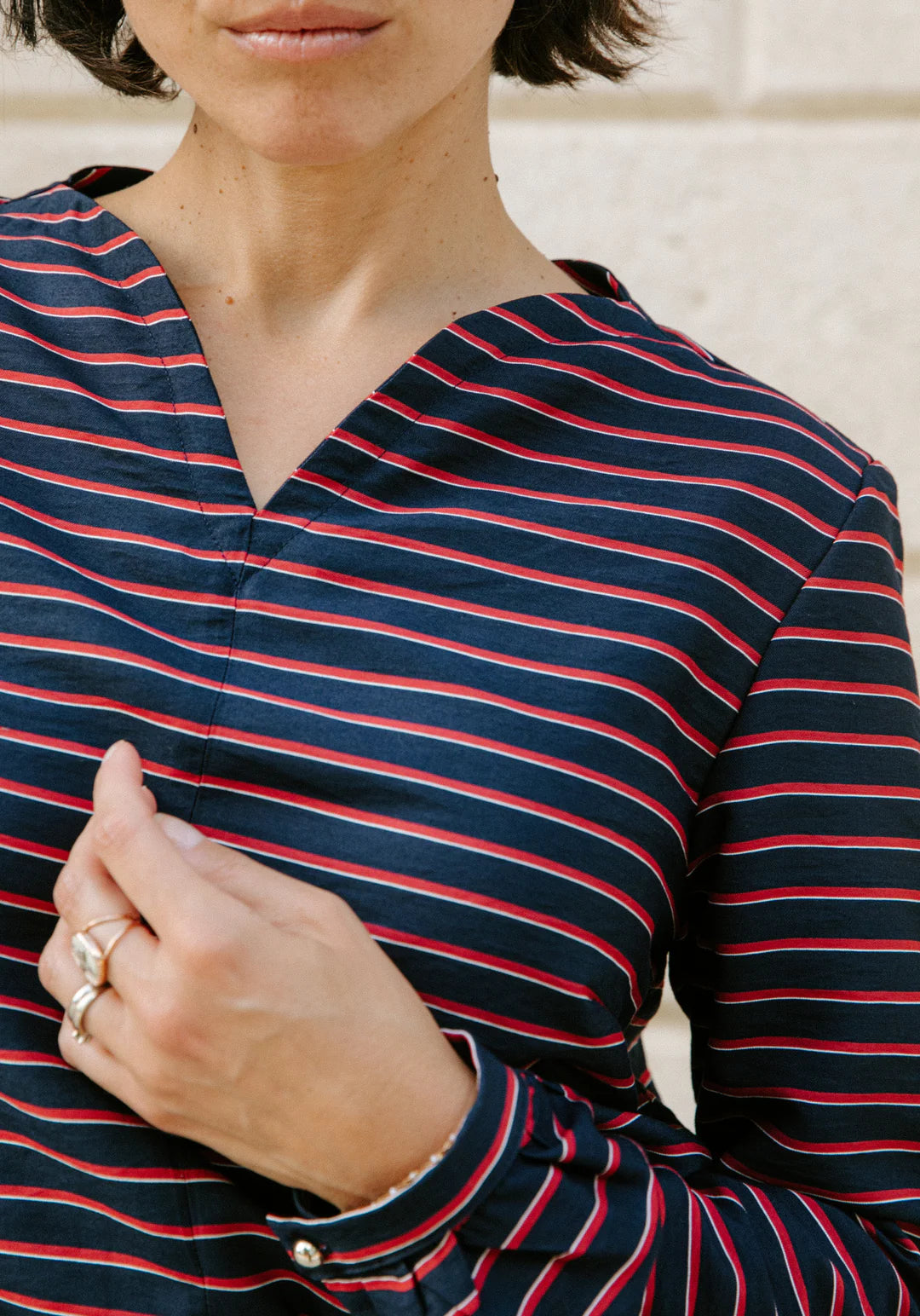 Fabric choice: Choose soft, lightweight fabrics between 70 and 200 g/m2 that press well - this will help with achieving clean, curved neckline finishes. Ideal options include poplin, crepe, voile, lace, lightweight denim, or chambray, in fibres such as cotton, viscose, linen, Tencel, or even silk.
