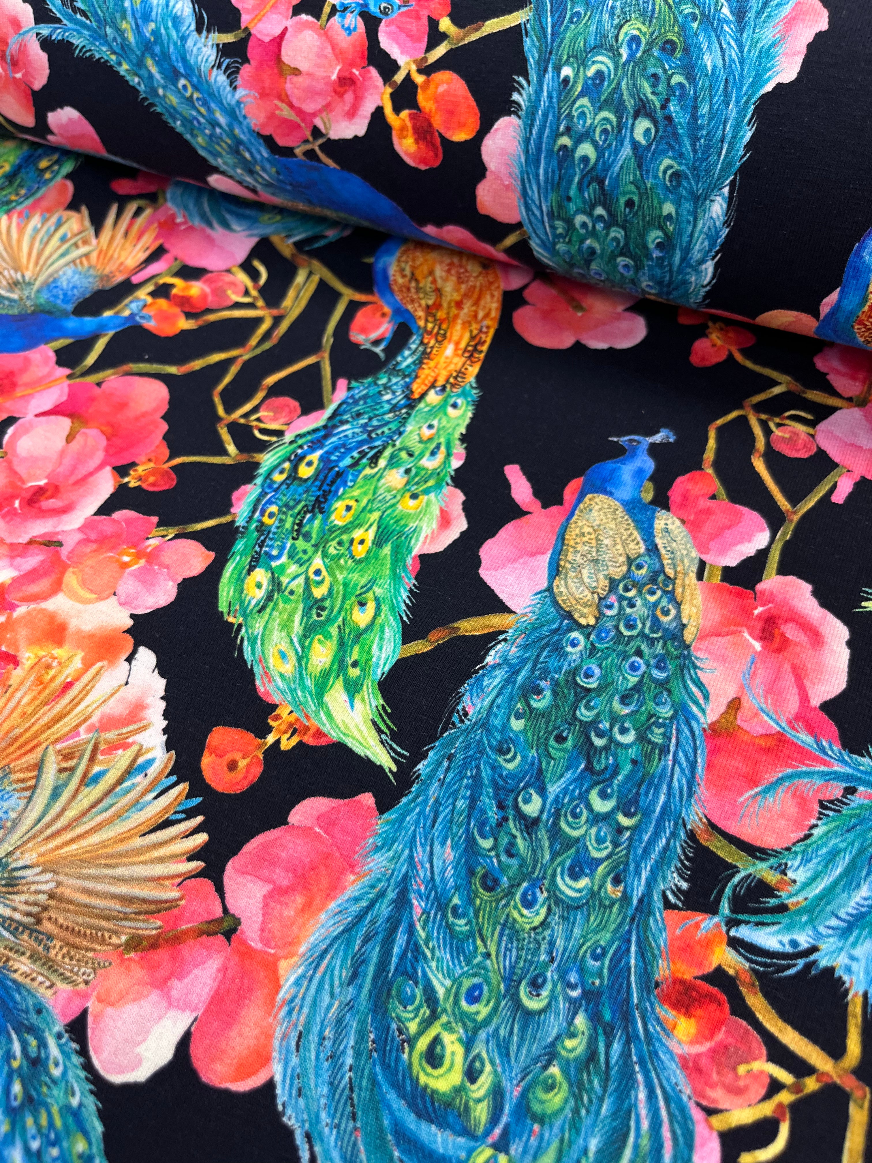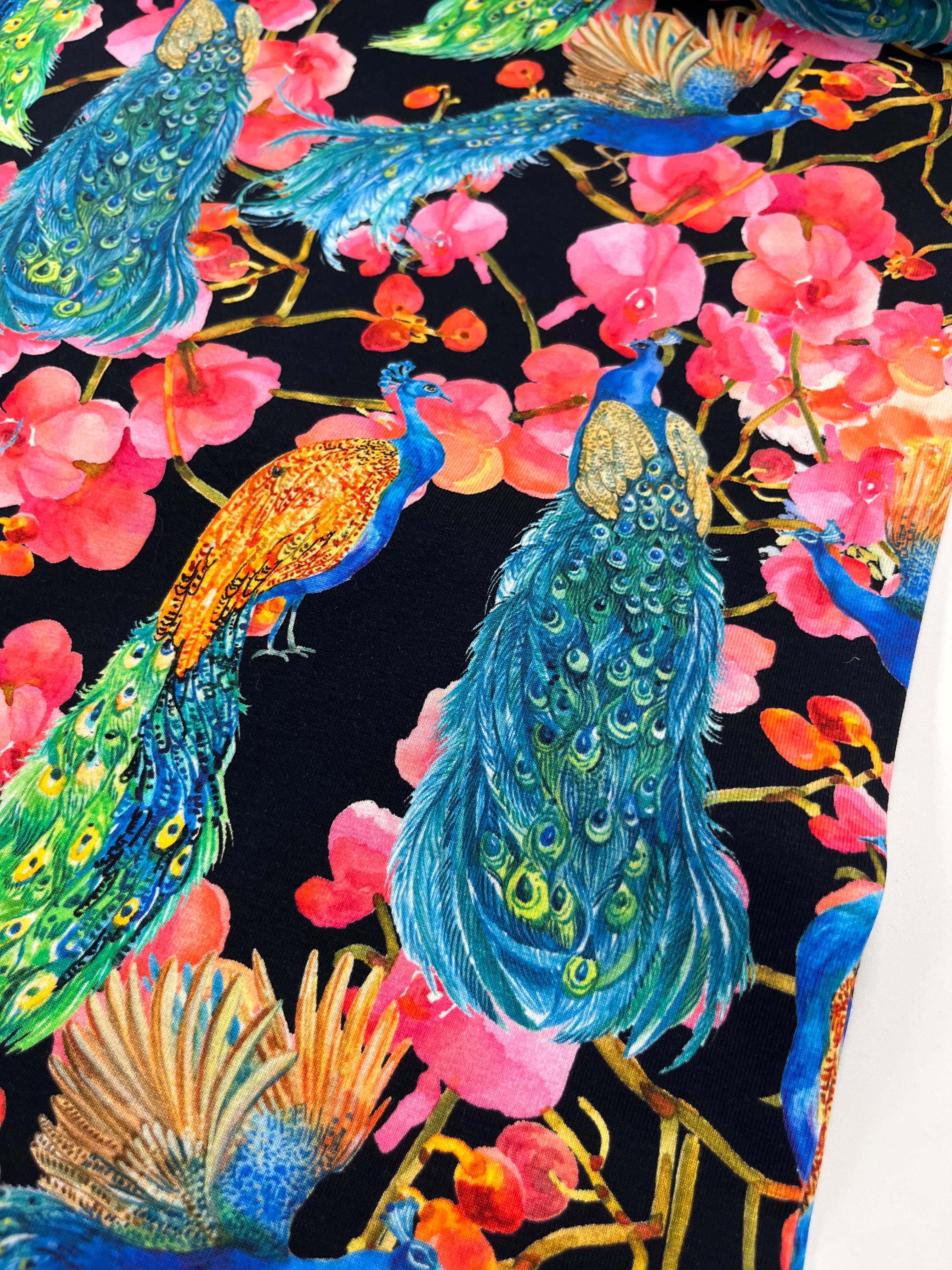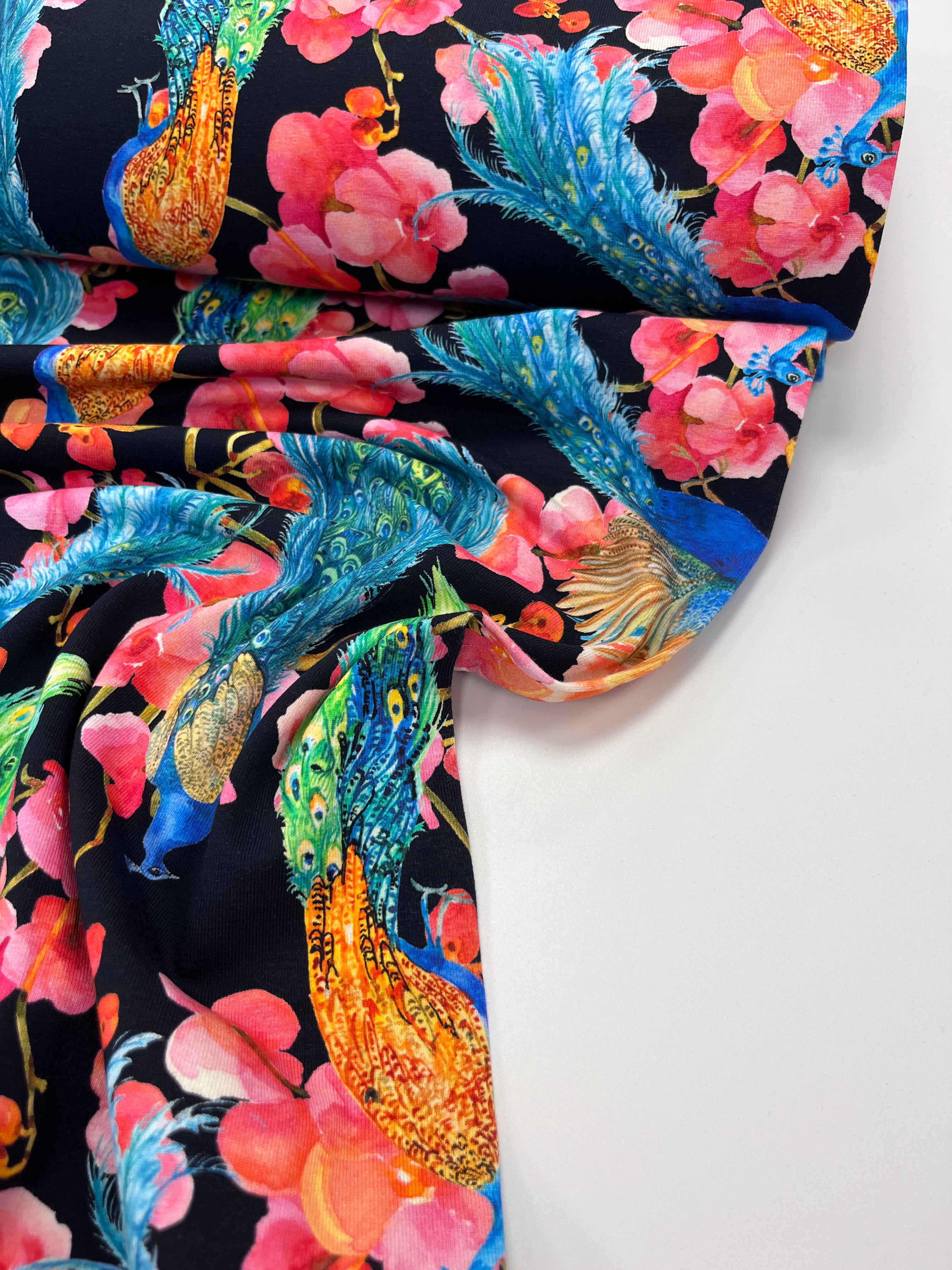 REMNANT | Peacock Floral | Cotton Jersey .7MTR