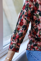 Flower Drips – Dusty pink and burgundy flowers seem to melt into a haze of black and khaki, like petals still beaded with water, gently slipping away after the rain.