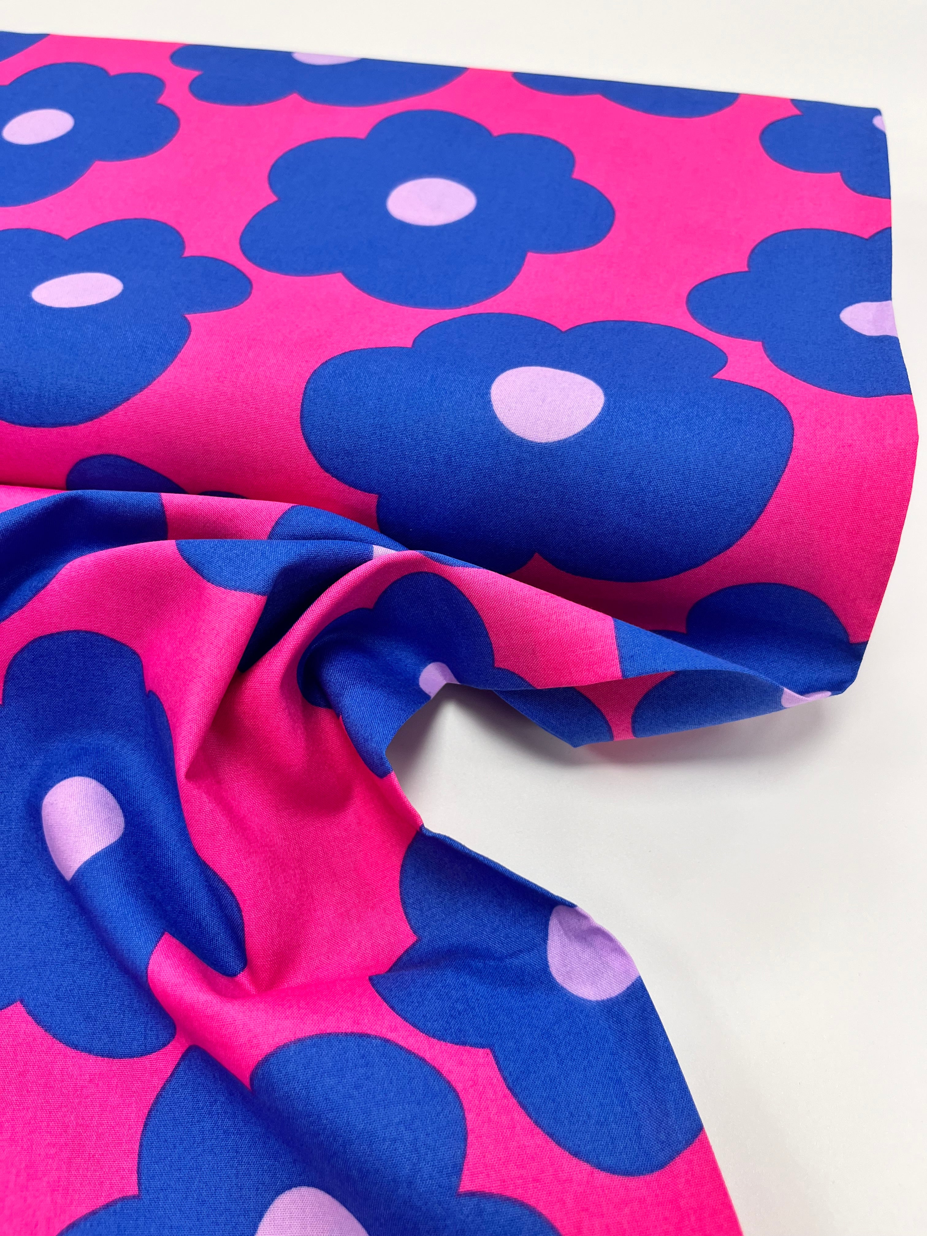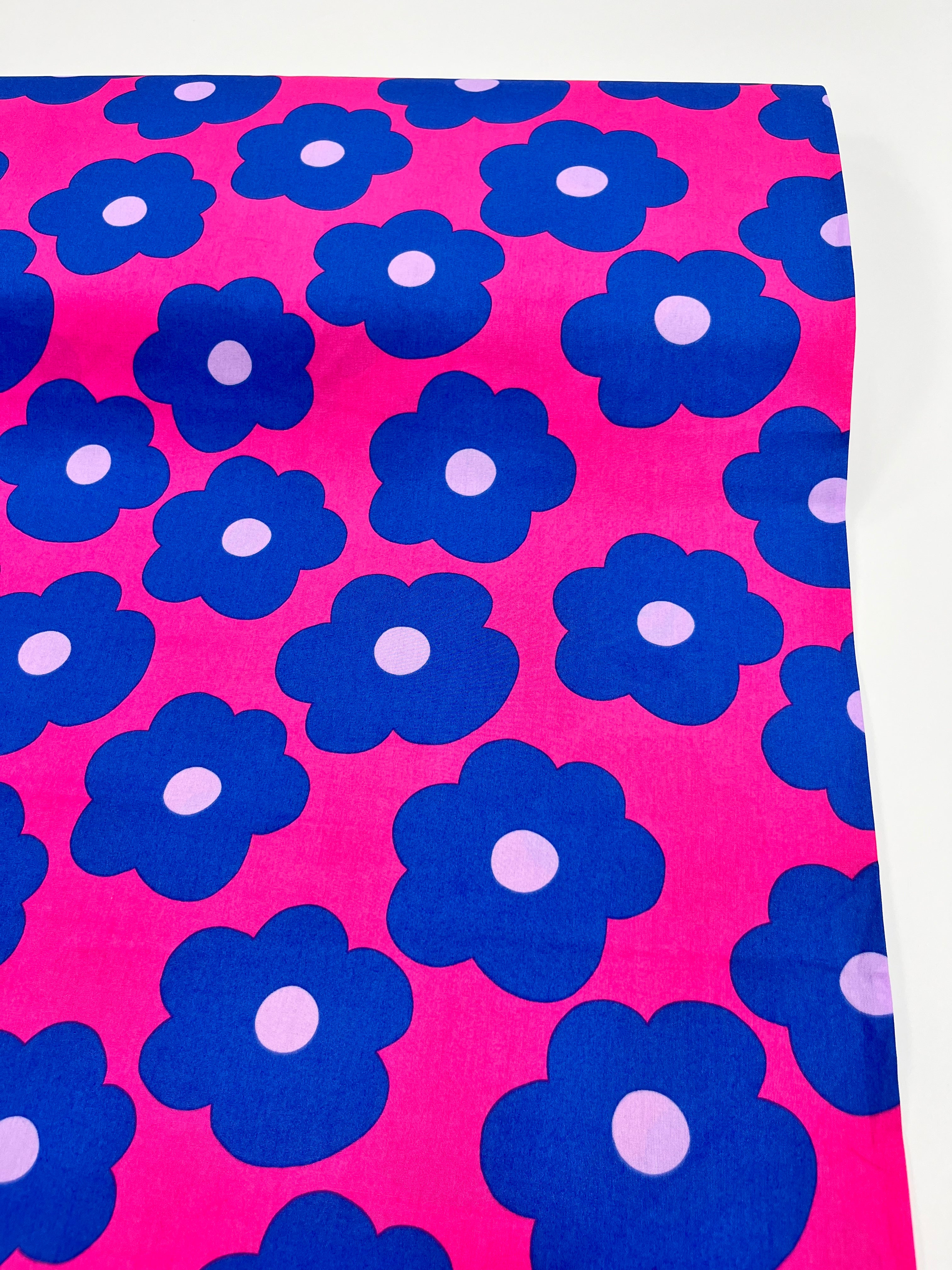 REMNANT | Nerida Hansen - Fine Poplin | BIG FLOWER | Bright Pink 3.2MTR