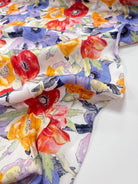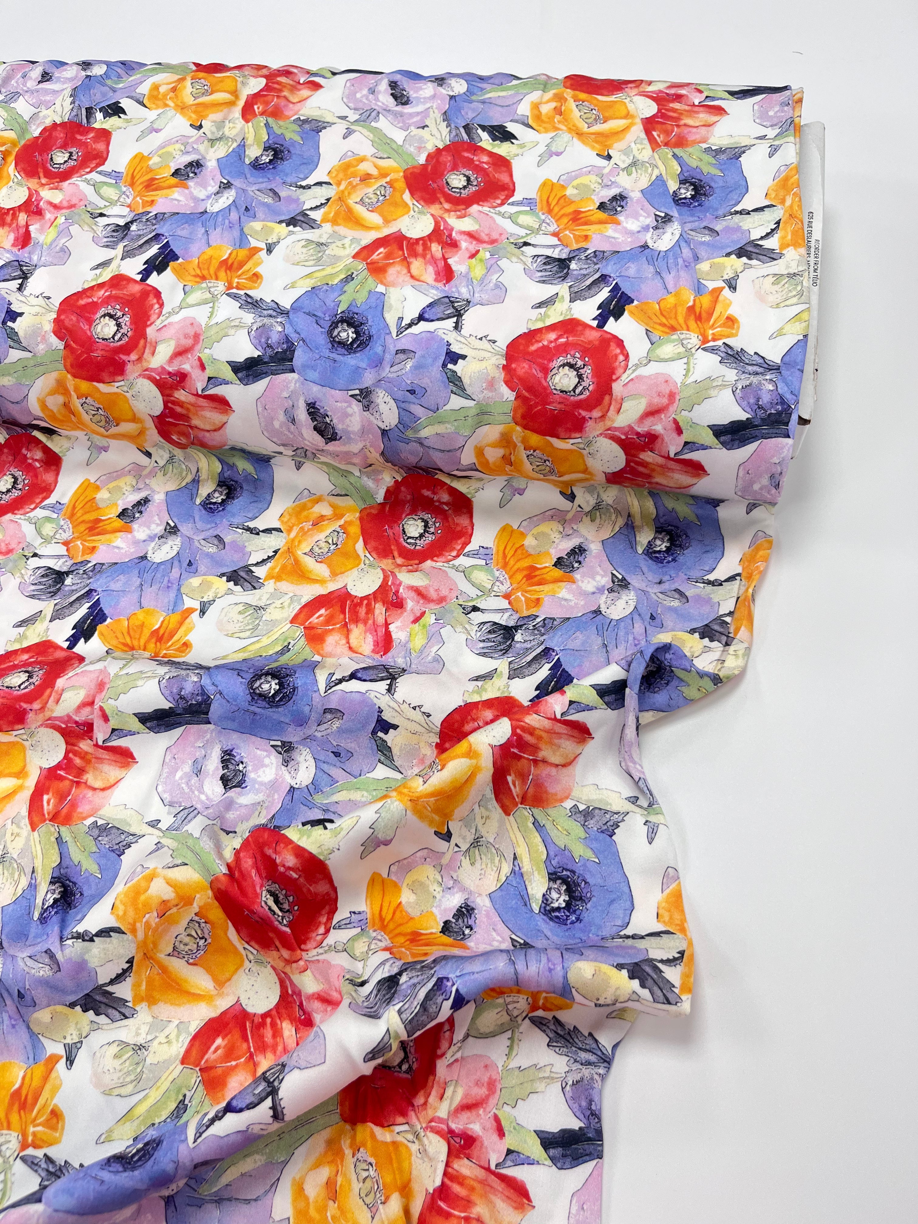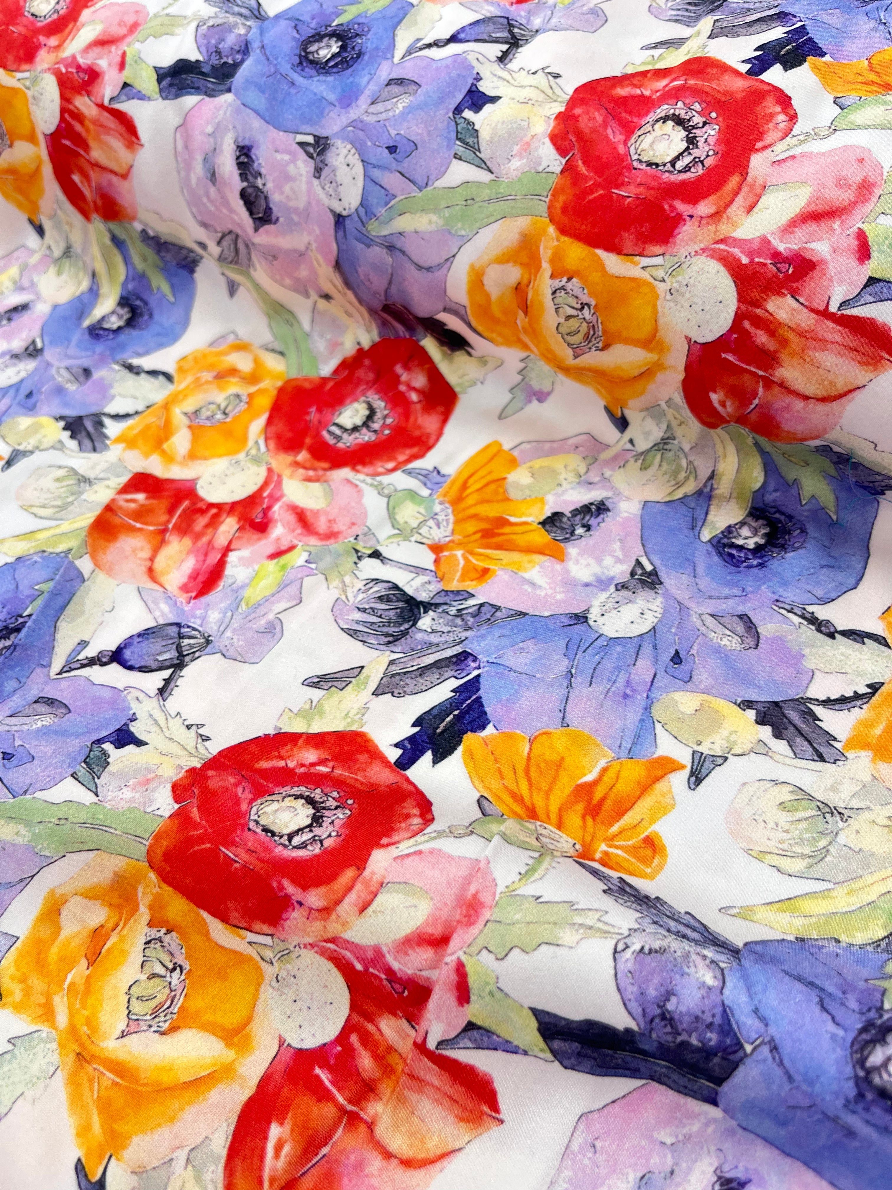 REMNANT | Peonies & Poppies | Viscose Satin | Off white 2.8MTR