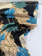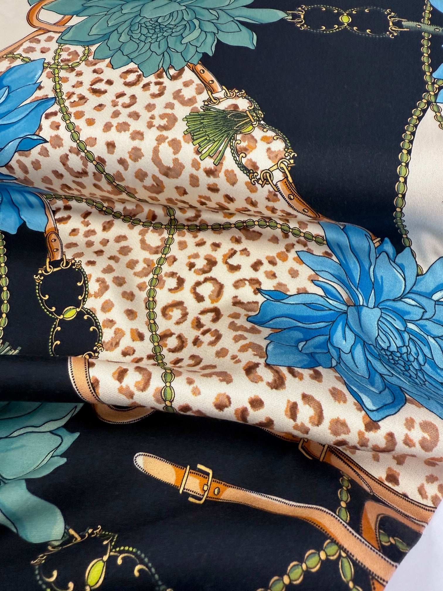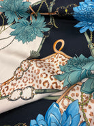 REMNANT | Viscose satin | Dahlias & Chains | Blue 1.1MTR