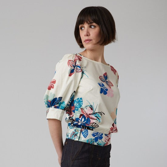 Sew your Ermine blouse for a refined and contemporary look, perfect for all spring and summer occasions. Wear it with a skirt, shorts, or pair it with pants like Paloma, Paul, Pénélope, or Philippine.