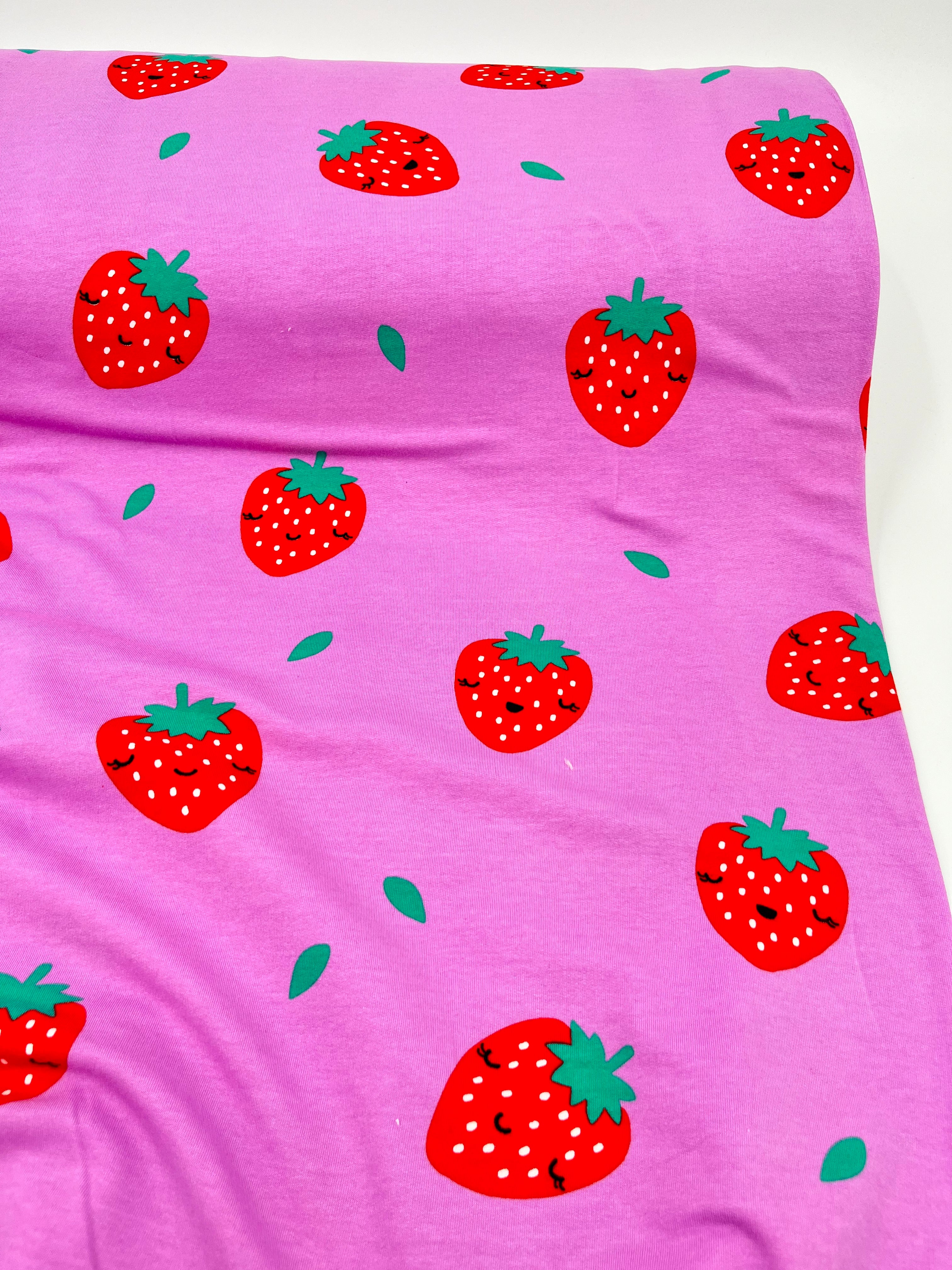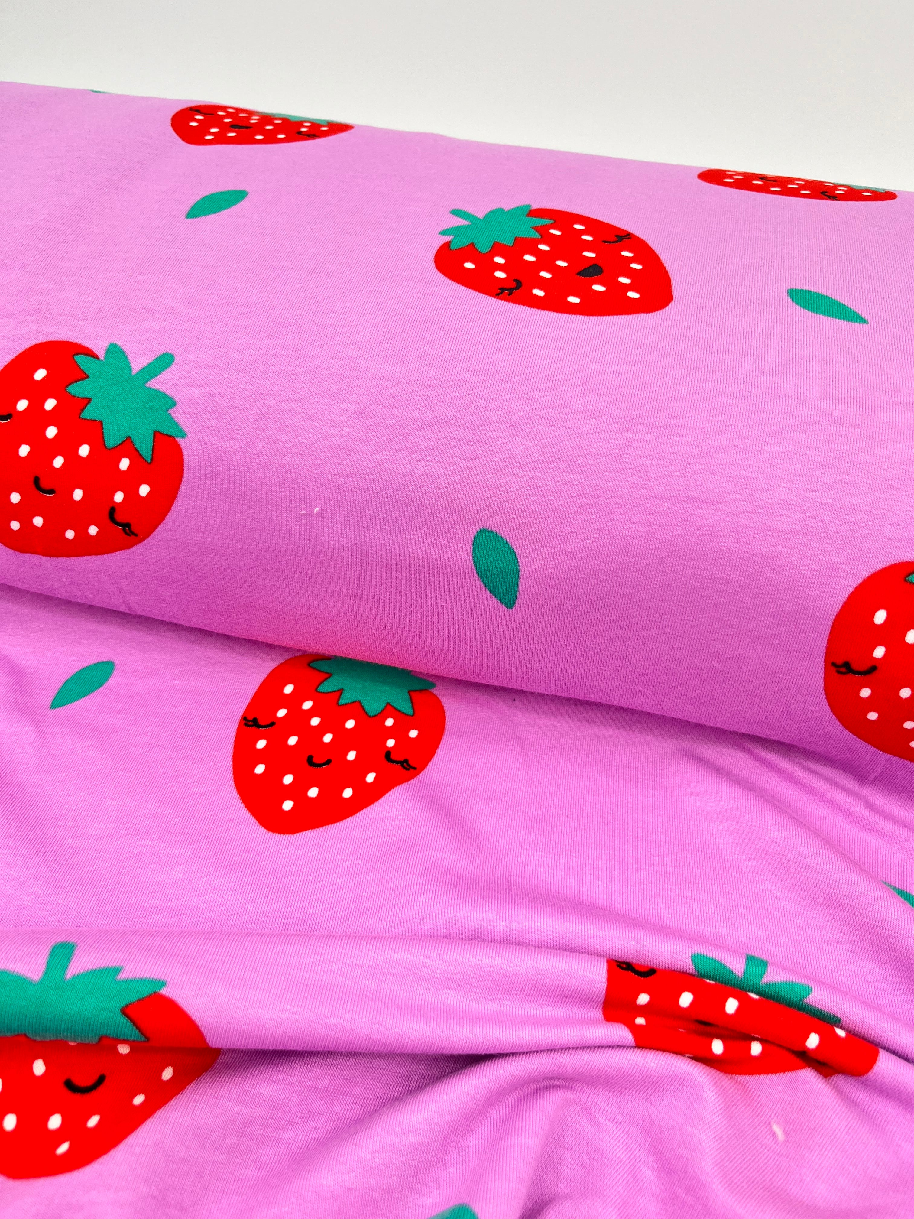 Sleepy Strawberries- Soft Sweatshirting-Pink