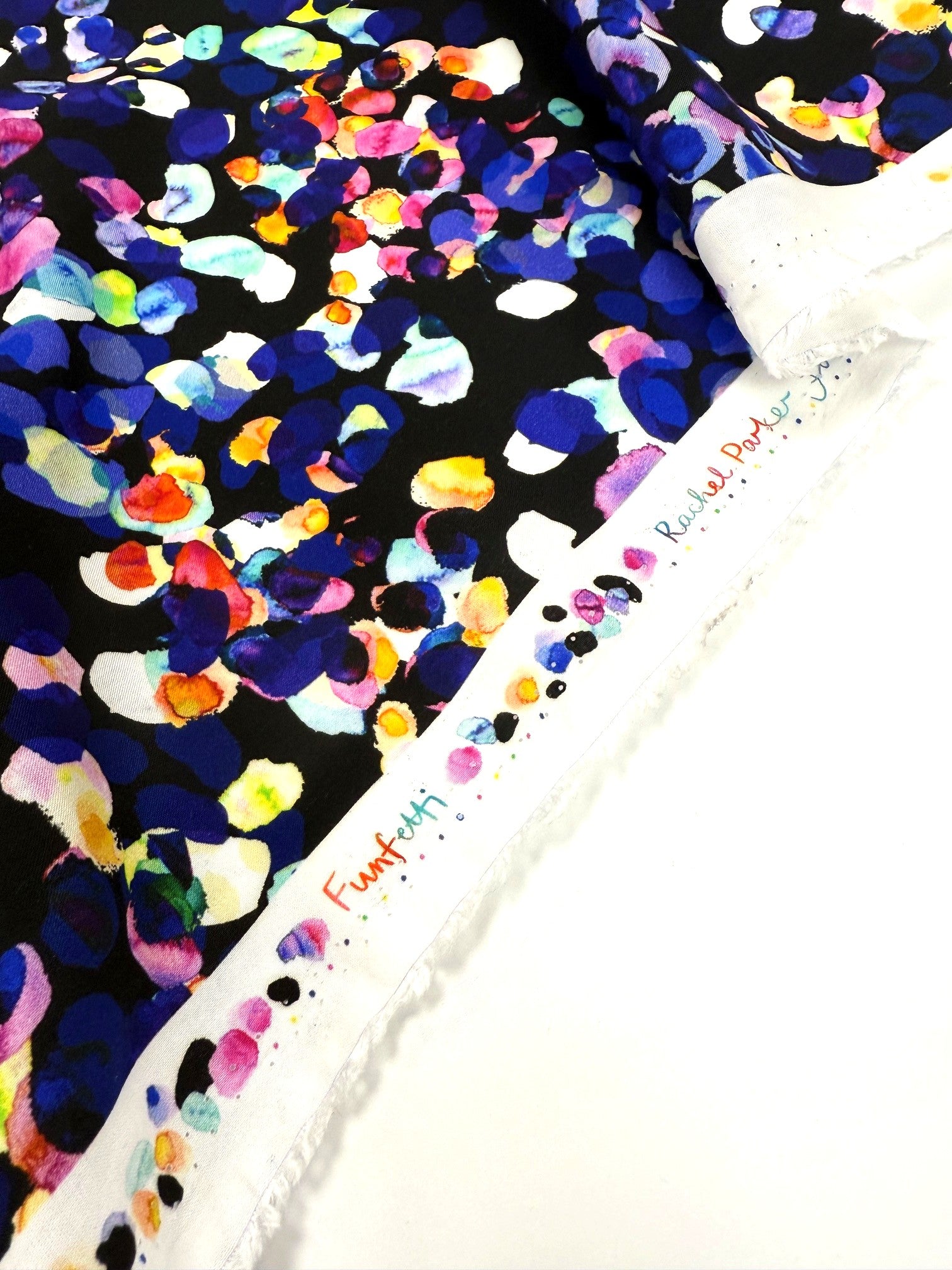 It is a FUN print featuring a CONFETTI inspired print made up of gorgeous sunny colours. Hense how we came up with the name FUNFETTI.