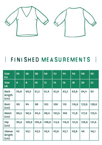 Zoey is a loose-fitting blouse with a V-neck and bust dart. The voluminous, three-quarter sleeves which are gathered at the hem, give this blouse an elegant look. We would love to share this gorgeous pattern with you!