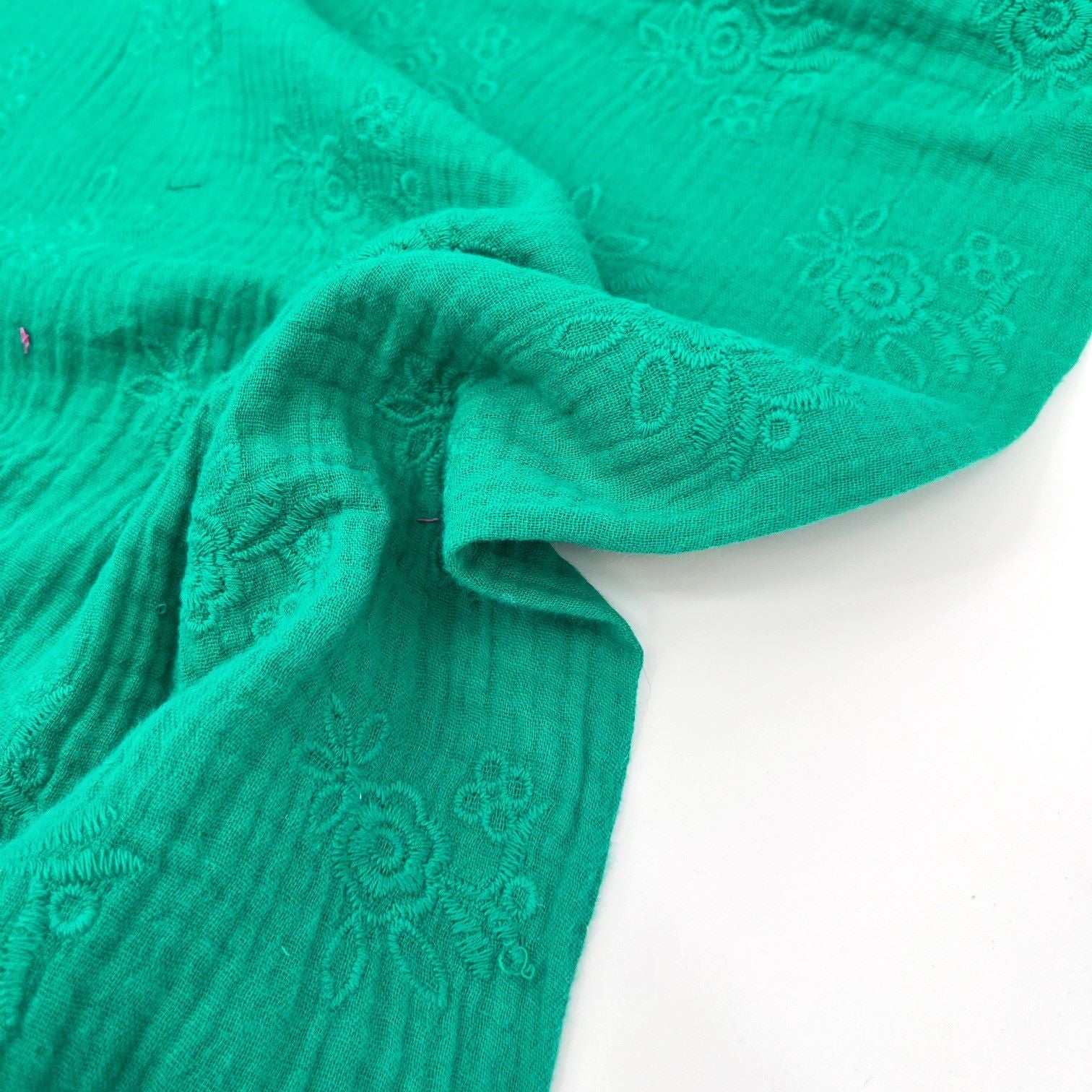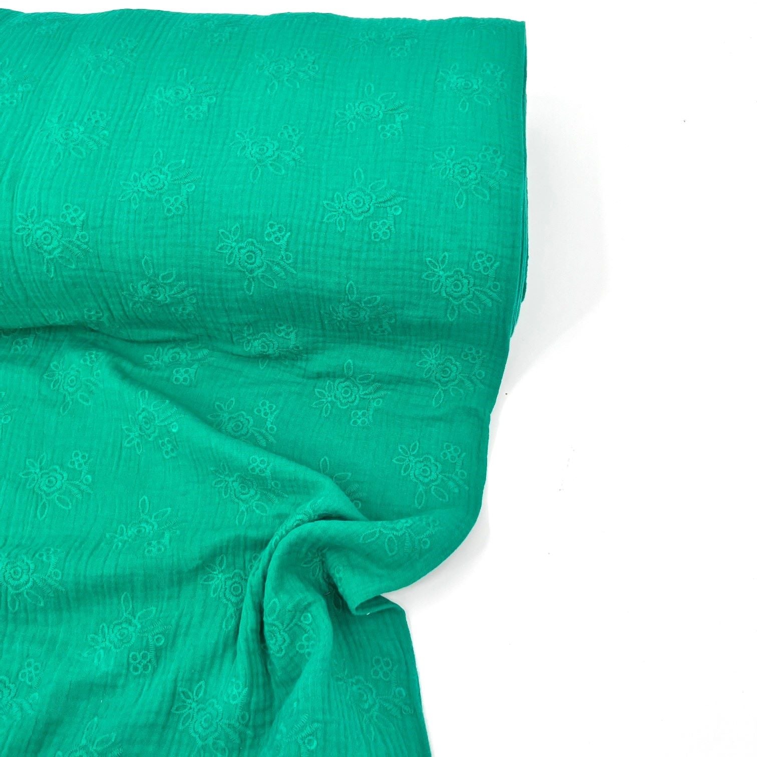 Remnant | Floral Embroidered Double Gauze Cotton | Teal .6mtr