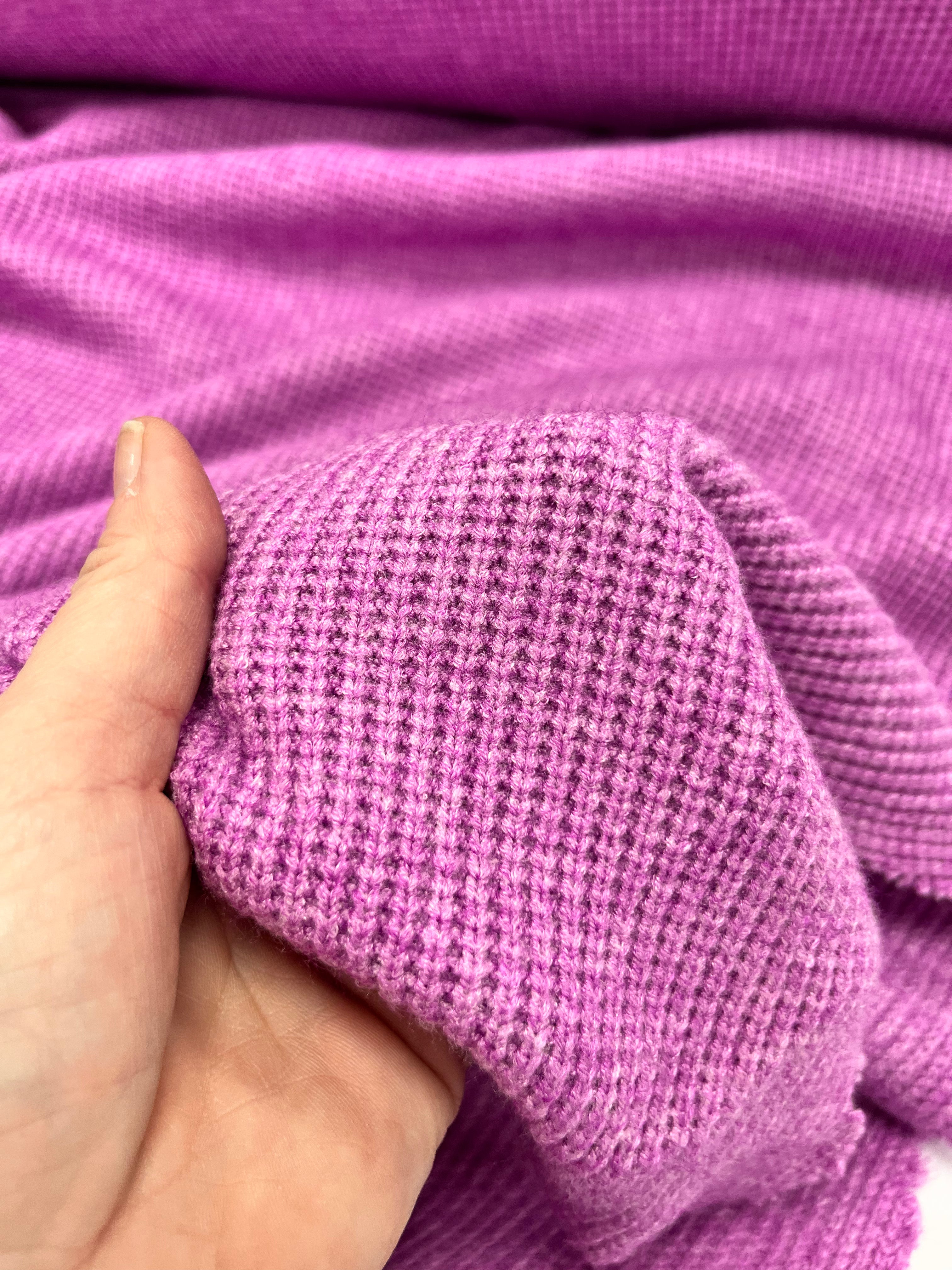 Our rib knit sweater knit is so soft . It has the appearance of a hadknit. It is perfect for making Spring wardrobe staples such as sweaters, cardigans ,skirts and dresses. It has a lovely drape.