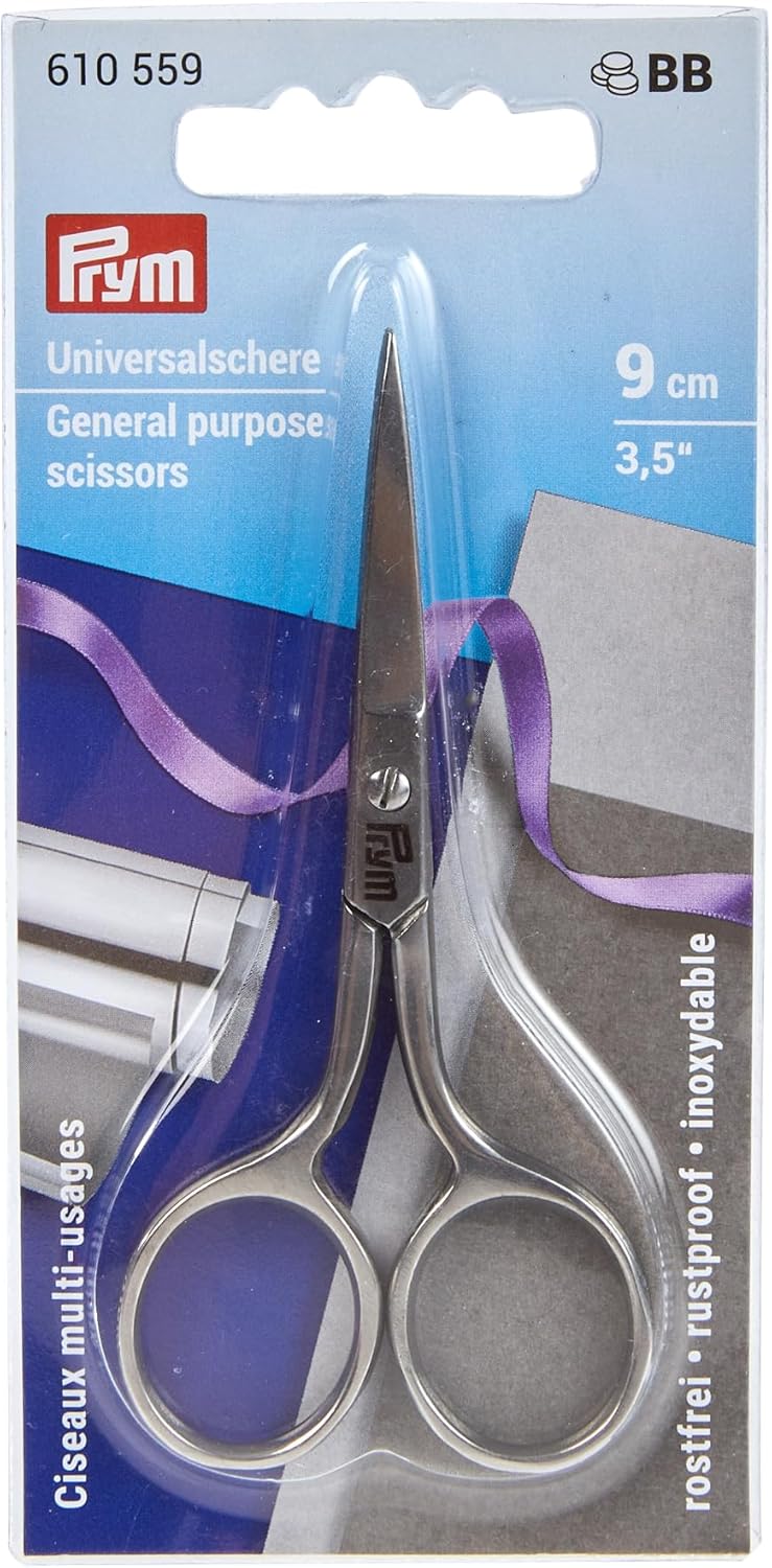 “Prym general purpose scissors manufactured entirely from stainless steel for strength, durability, and corrosion resistance. Designed as compact, multi-use scissors suitable for a wide range of household, sewing, and craft applications. The precision-ground, pointed blade tips allow accurate cutting of threads, lightweight materials, and detailed work, while the robust steel construction ensures stable cutting performance. The smooth, high-gloss finish provides an attractive appearance and easy handling. Suitable for both right- and left-handed use.”