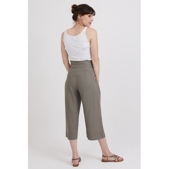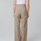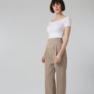 Paloma is a high-waisted pleated trouser or cropped pant with wide legs, designed to elongate the silhouette with elegance and ease. The side invisible zipper gives it a refined, minimal finish.