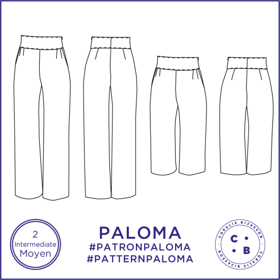 1 pattern / 2 options (trousers or culottes), a bestseller since 2019, available in sizes FR 34/56, US 2/24, UK 6/28).