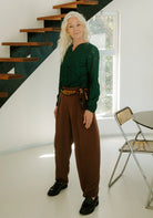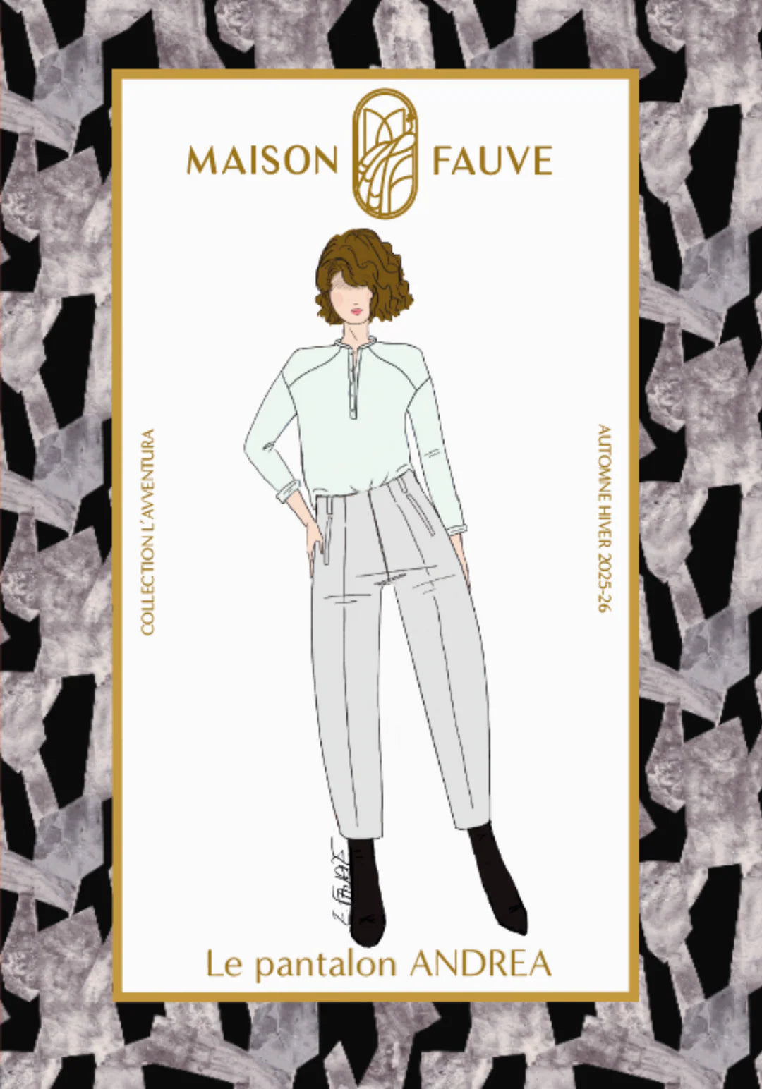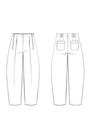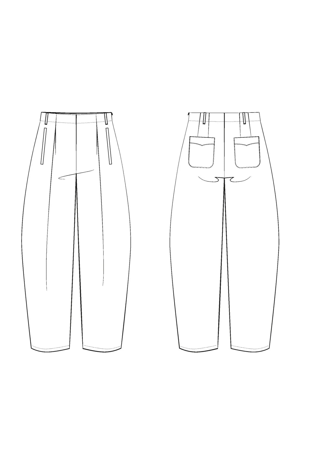 ANDREA is a barrel-leg trouser with a gently rounded shape through the leg, tapering at the ankle - a perfect blend of modern edge and tailored elegance. Its flattering cut adapts beautifully to your fabric choice, making it as versatile as it is chic.