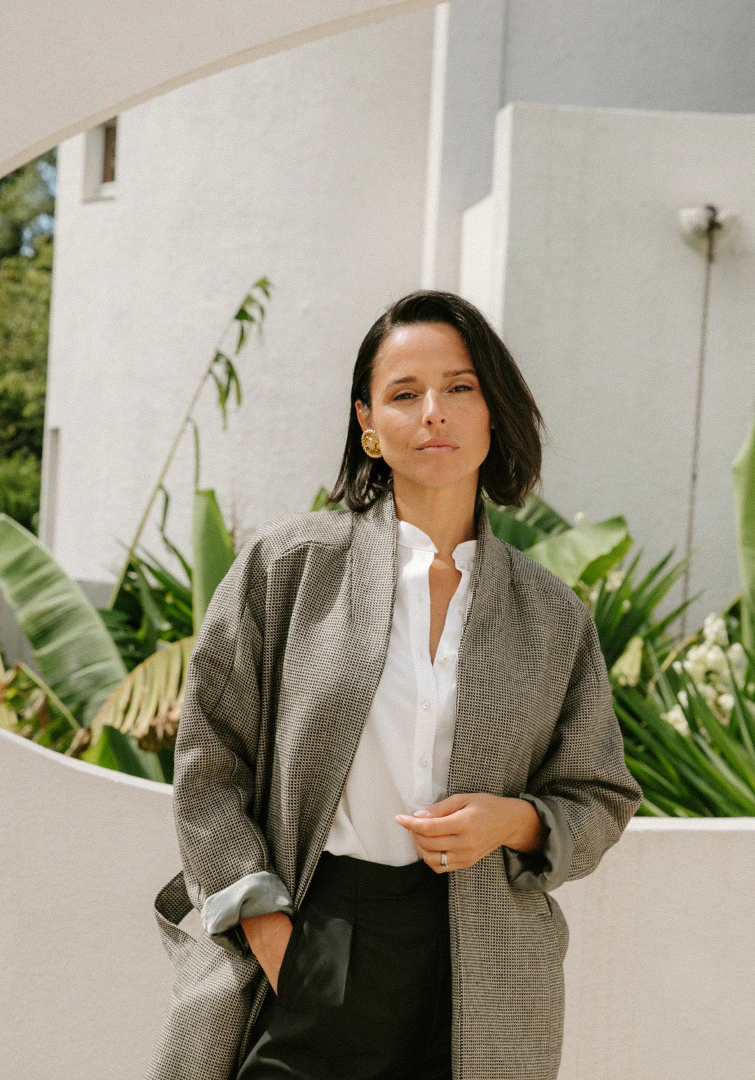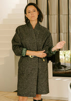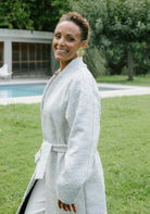 MARCELLO slips on like a borrowed men’s coat, but once belted, it gives a silhouette of effortless femininity. It has a collarless shape, cinches at the waist and a framed neckline that gently follows the curve of the neck. The absence of buttons gives it a relaxed yet confident feel, while carefully crafted shoulder and back details add a refined structure. Its clean lines and straight cut are inspired by 1960s Italian tailoring - balancing the strength of a structured shoulder with the softness of a drape you’ll love to wrap yourself in. A must-have with just the right hint of androgyny - without compromising elegance.