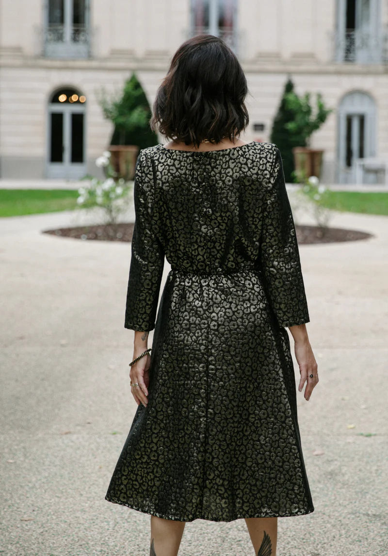 From the Festive Fauve 2025 capsule collection, the beautiful NOTTE dress is an elegant and feminine creation, designed for the holidays. Its sweetheart neckline flatters the neckline, while its defined waist and delicately pleated bodice create a graceful, effortless silhouette. Two back options (open or buttoned) and two skirt lengths allow for a variety of styles, from evening looks to more everyday wear.