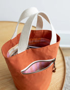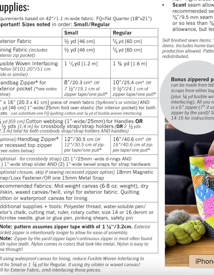 A fun bag in two sizes (small and mid-sized) with a flat base and zippered front pocket. Lots of options to customize yours, from handles, a crossbody strap, and closure options (recessed zipper, magnetic snap/Loxx, or metal snap) will make this bag a multipurpose one you grab again and again. Perfect for knitting and crafting supplies, a lunch bag, toiletries, or as an everyday bag! PLUS, a bonus zippered pouch!