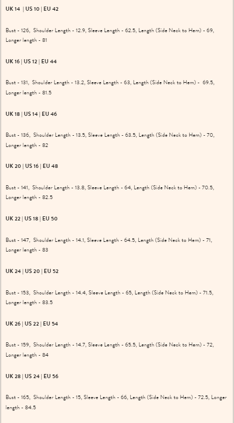 Bust / Waist / Hip (based on standard UK measurements) - Measurements in cms