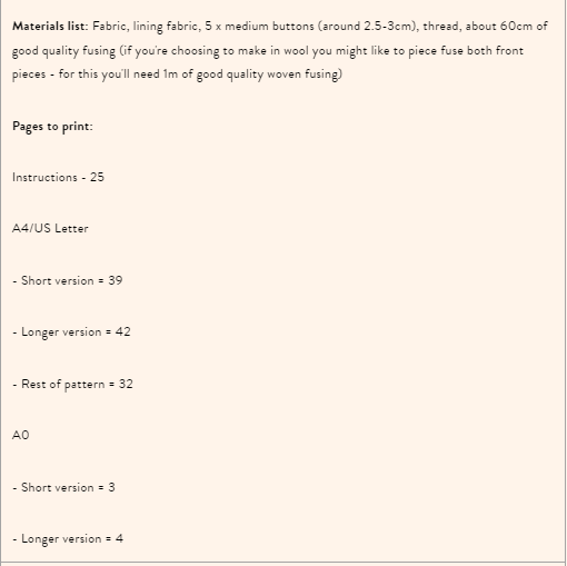 You can choose to purchase the PDF pattern only and print your A4 pages at home OR you can choose to purchase the PDF and also the A0 print outs which we will print and post to you .