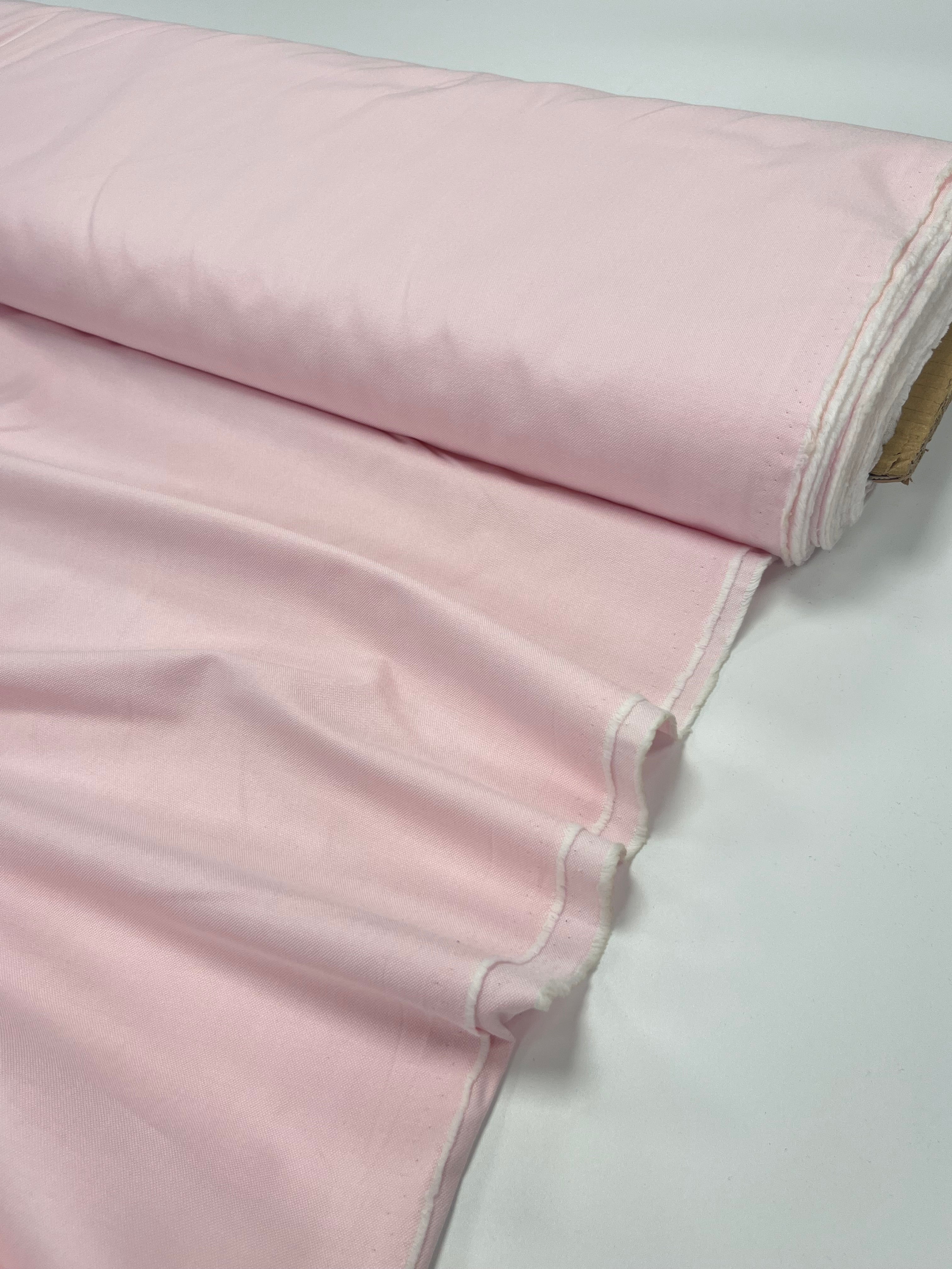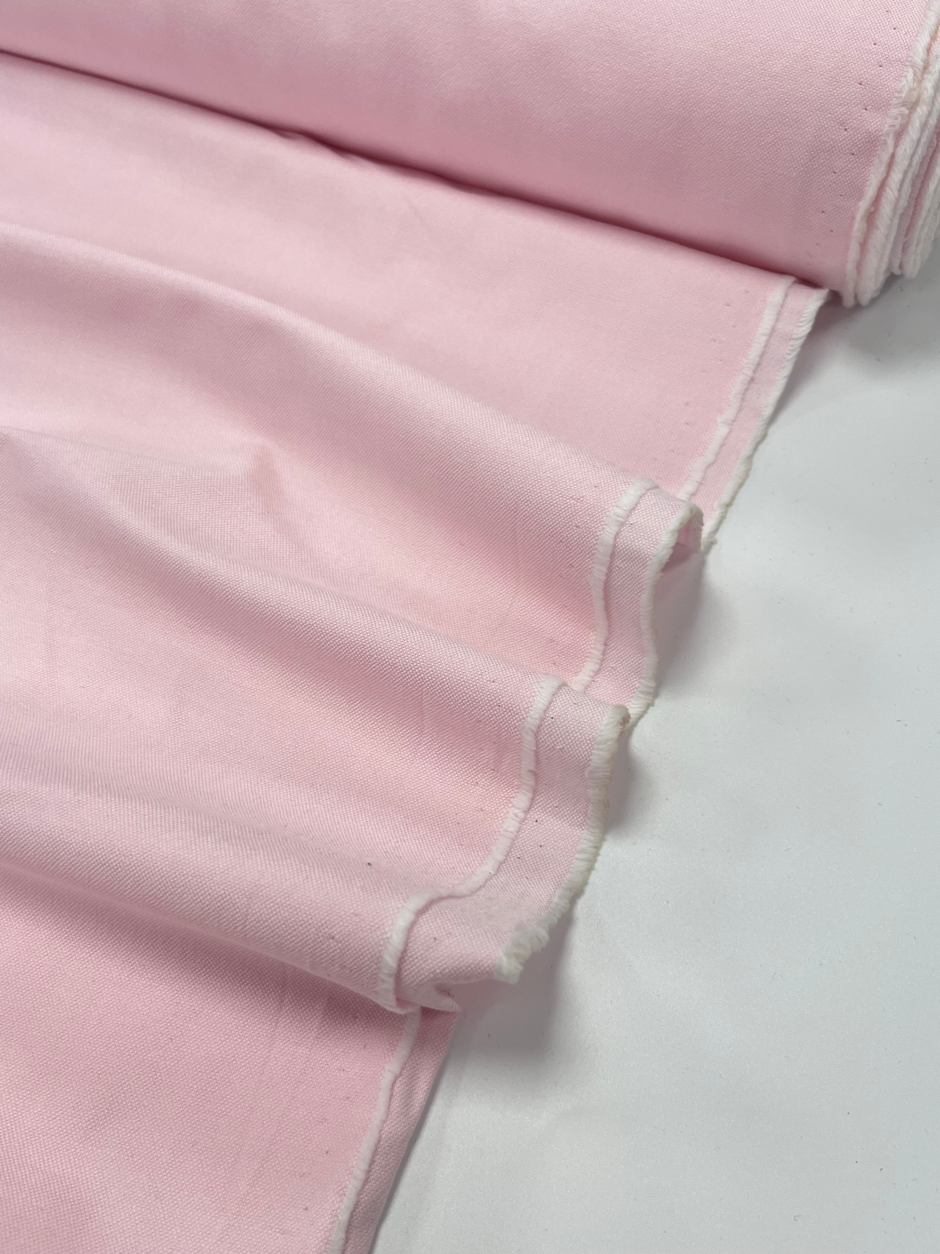This cotton chambray fabric is a lovely pink colour . It is a deadsstock so is of supreme quality . It would make gorgeous trousers as it has a rally nice structure