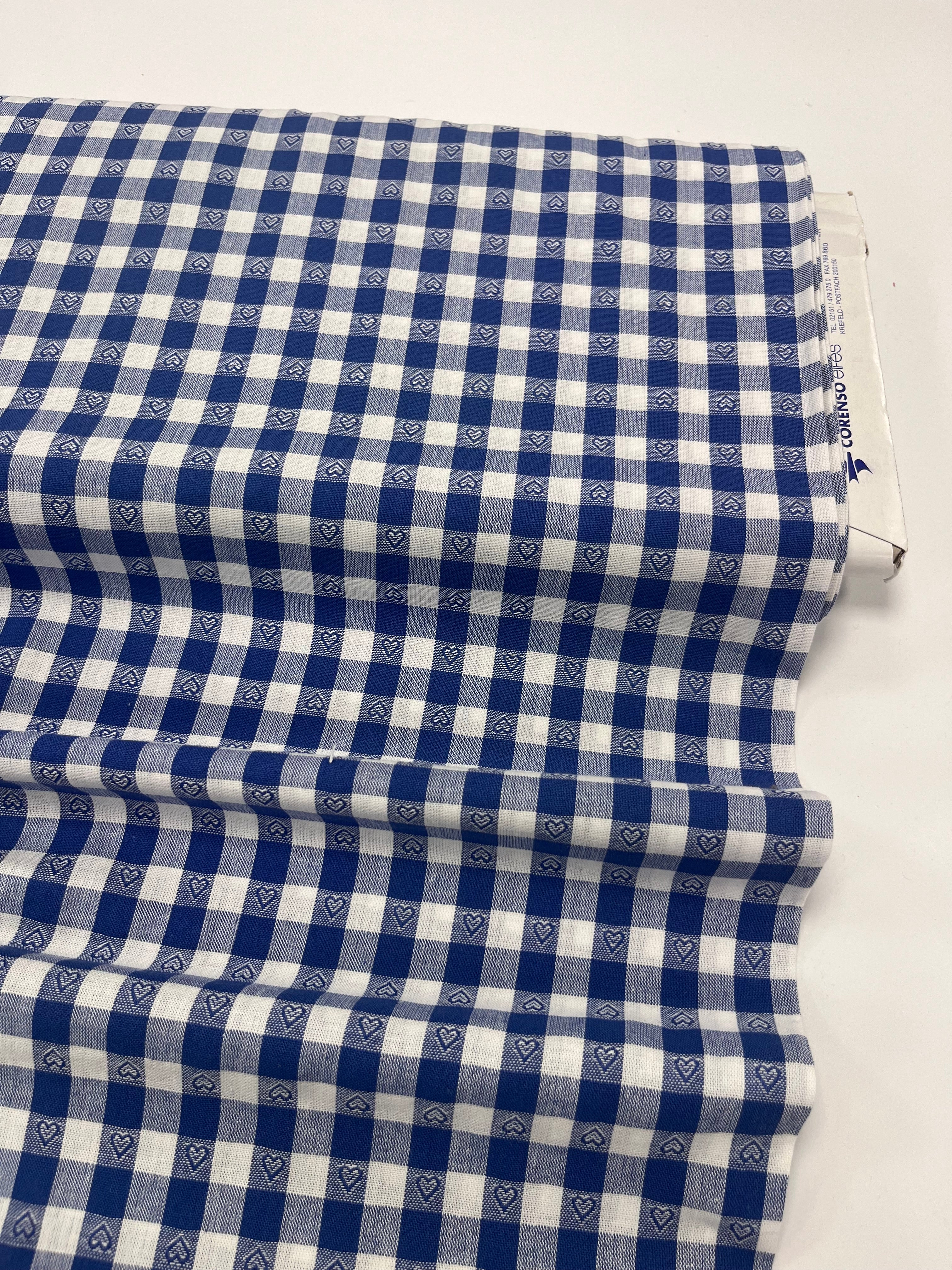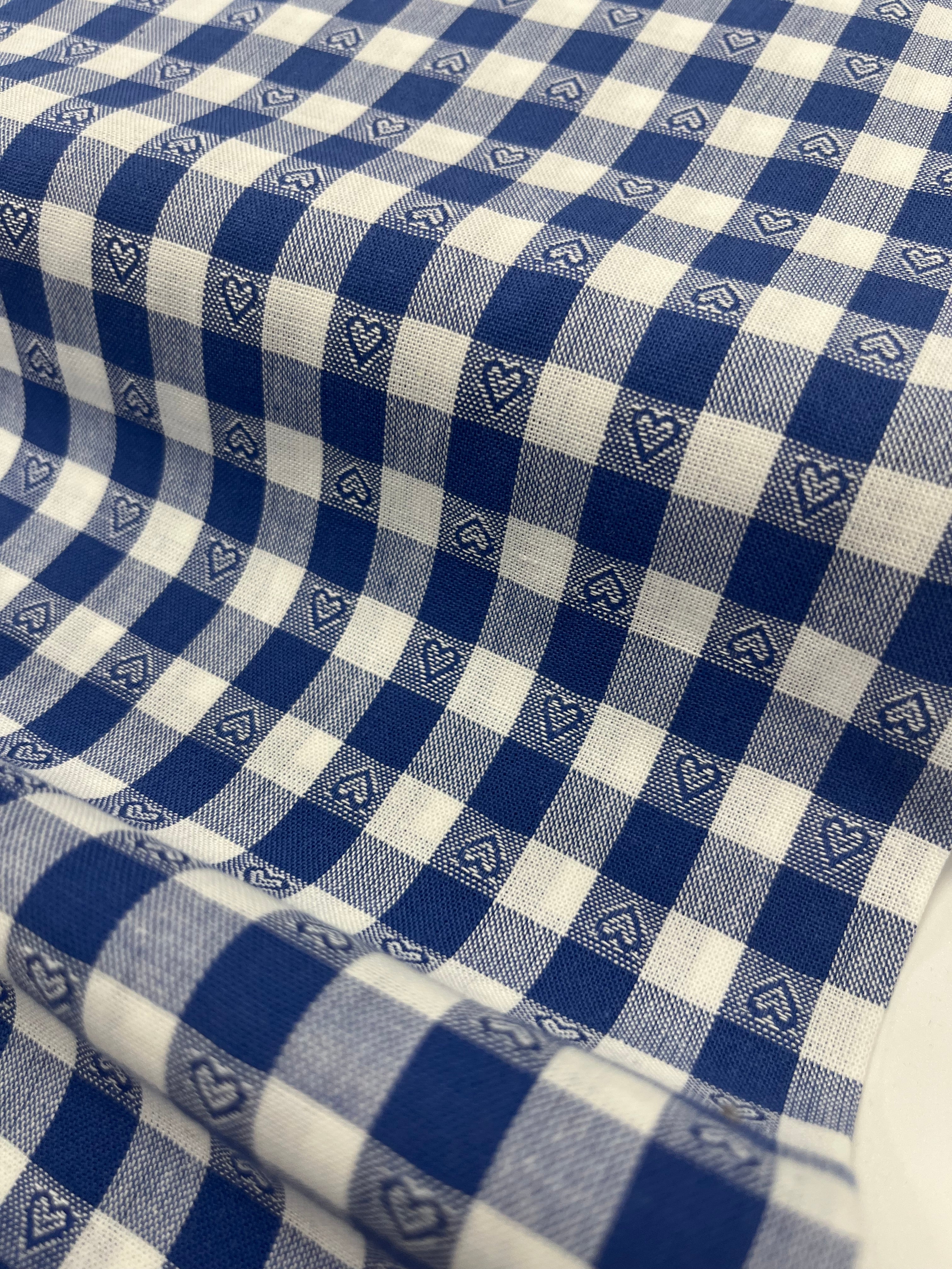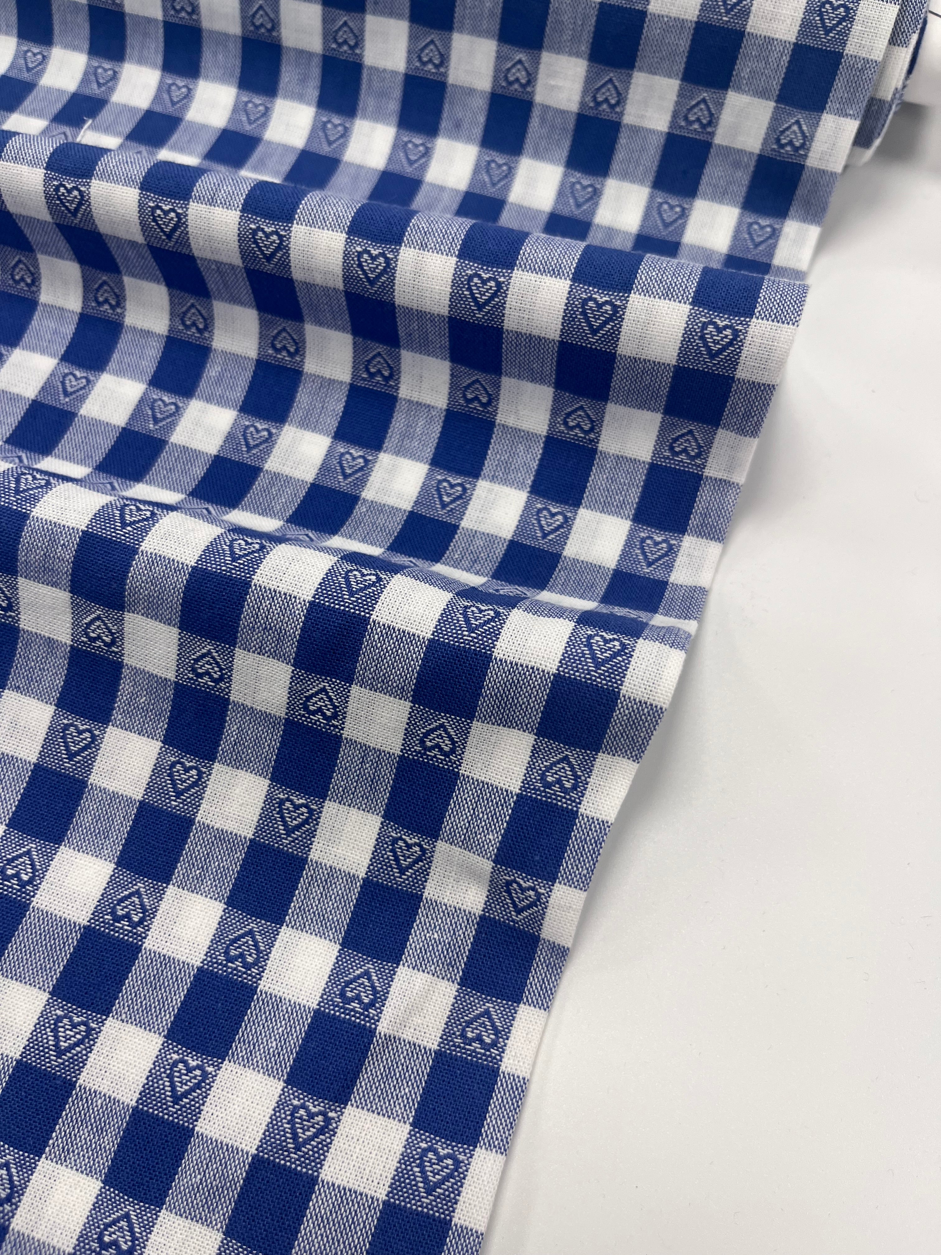 Gingham hearts check cotton | Blue