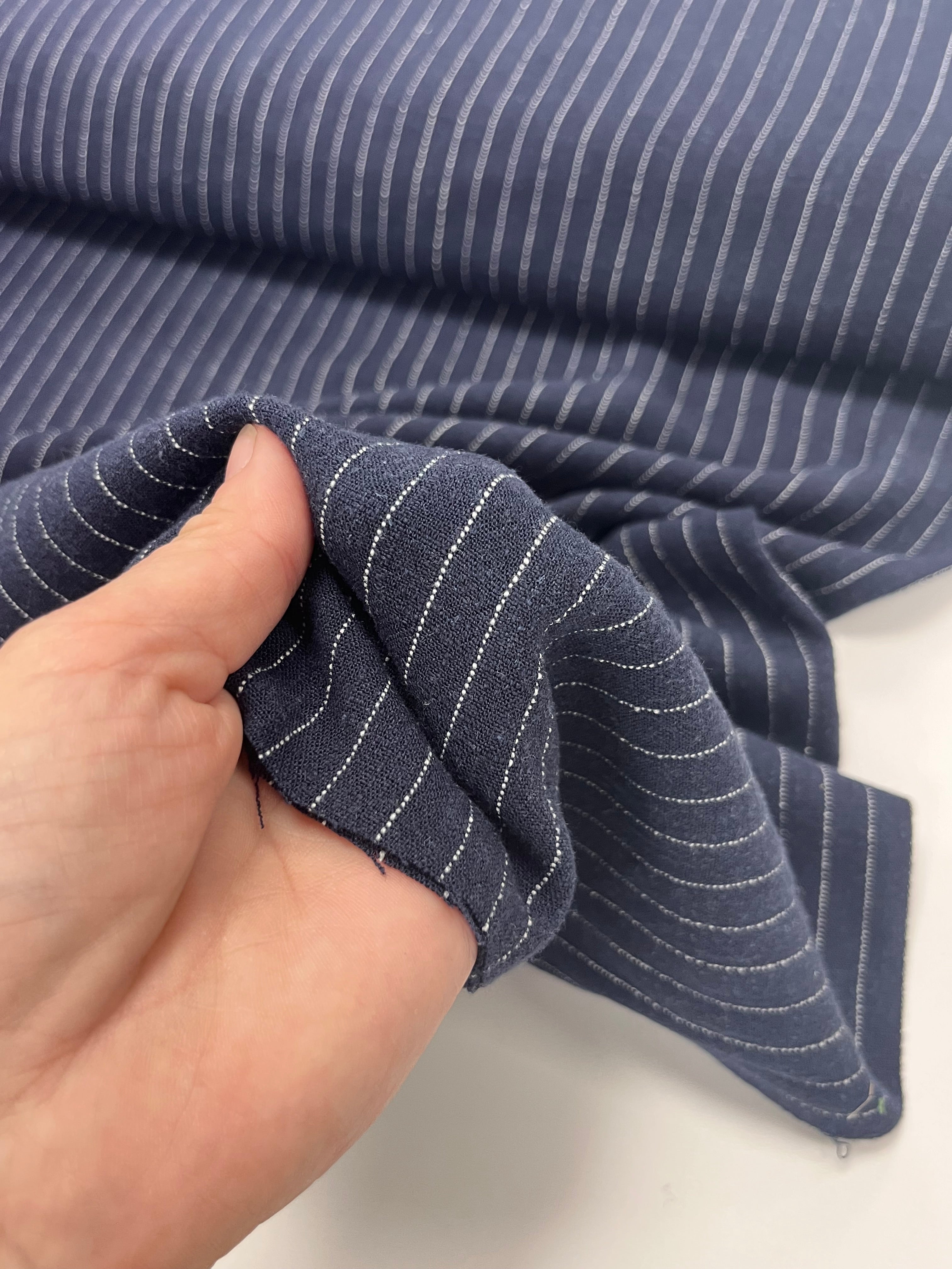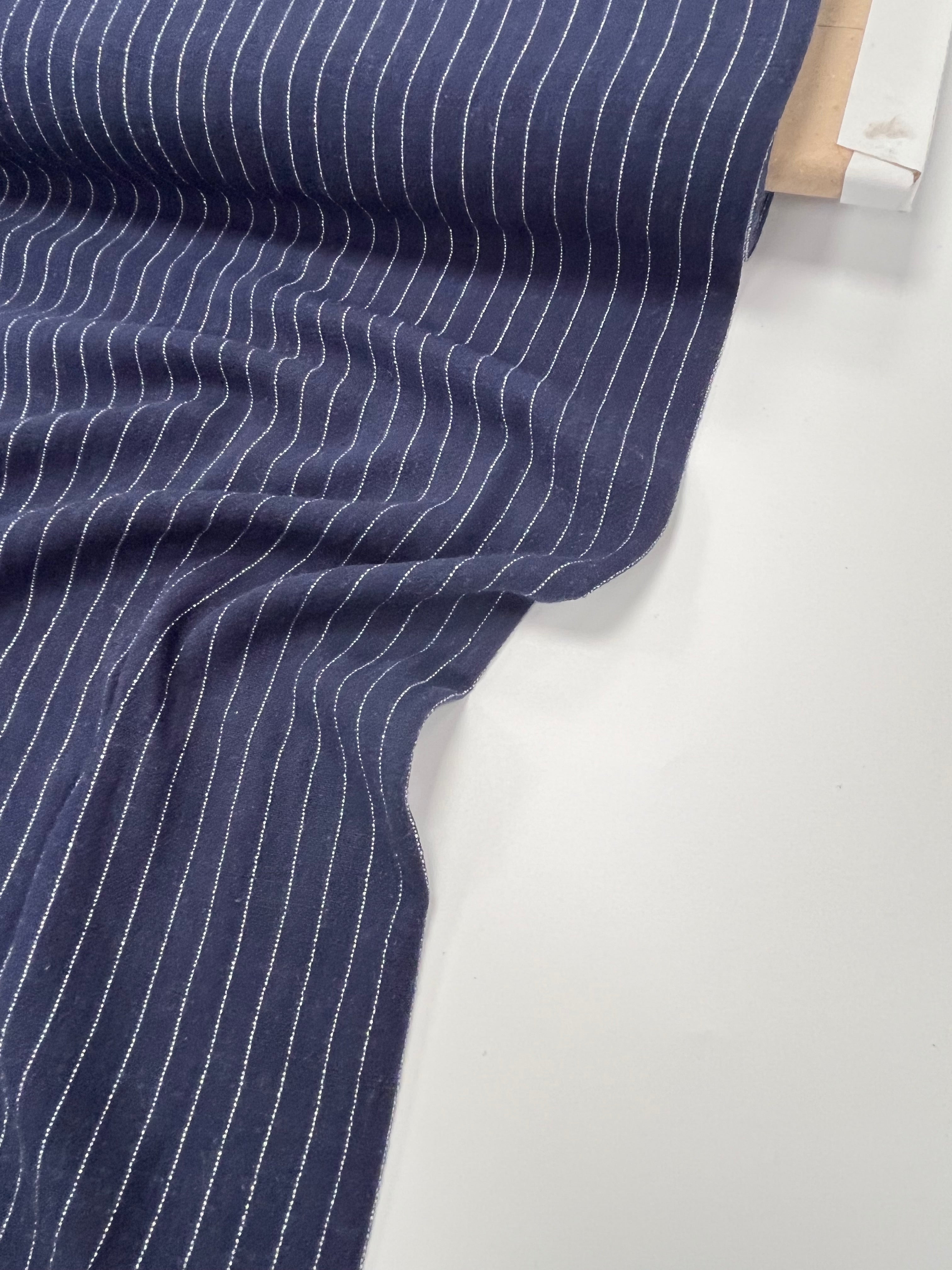 Linen Viscose Blend Pinstripe| Navy