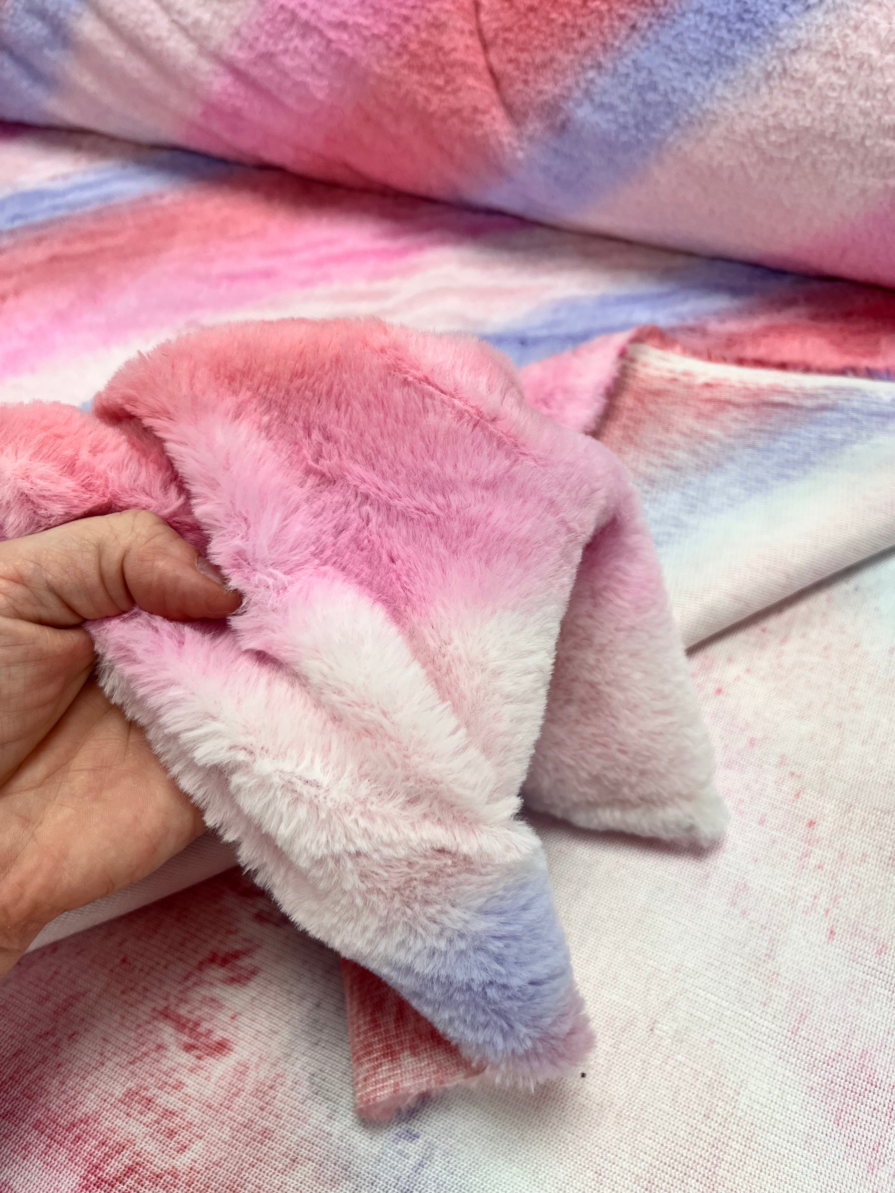 This fun faux fur is so soft . It would make a super bomber jacket with ribbing as cuffs and bands. It could also m=be used for a cosy sweater