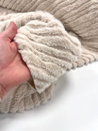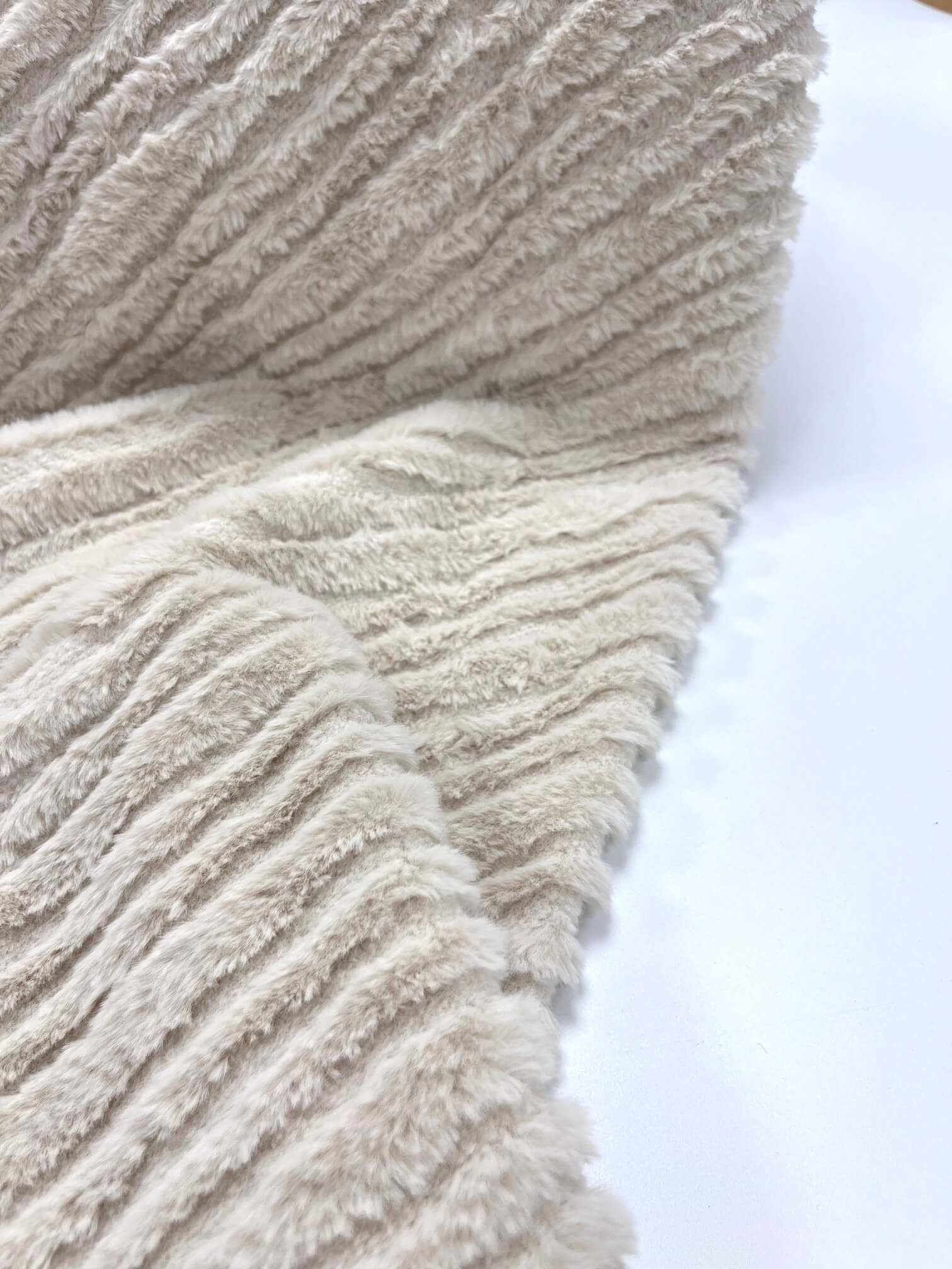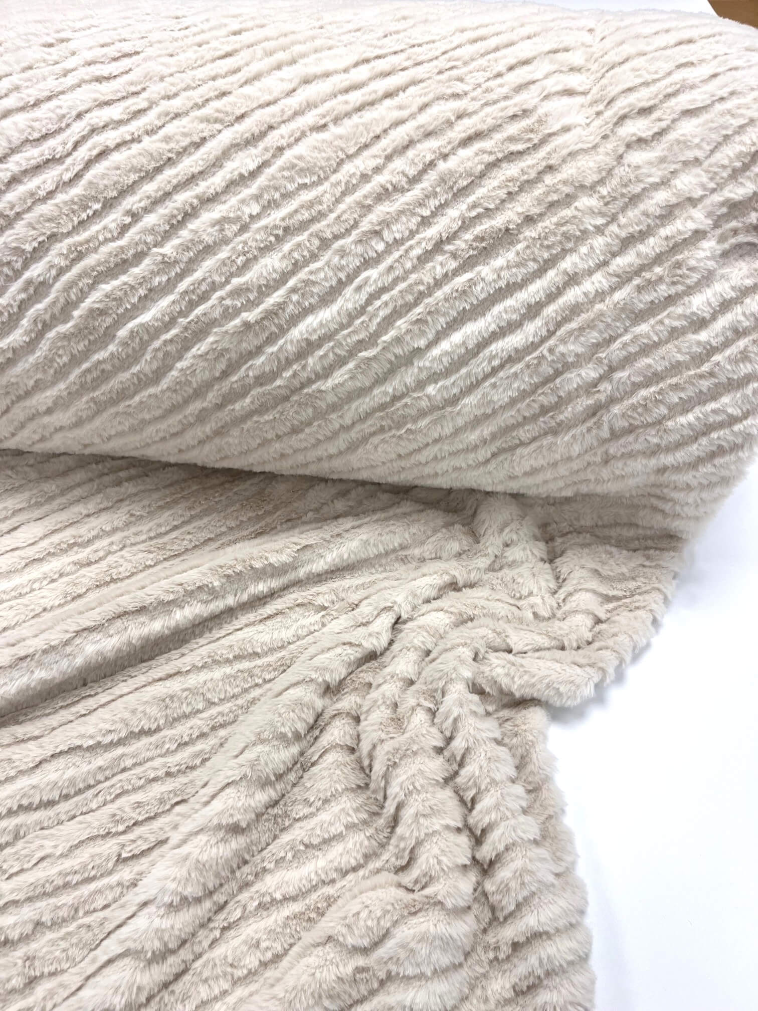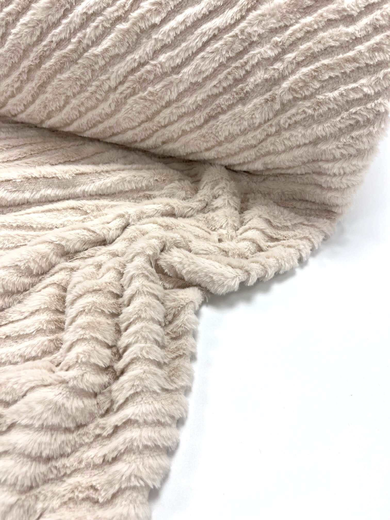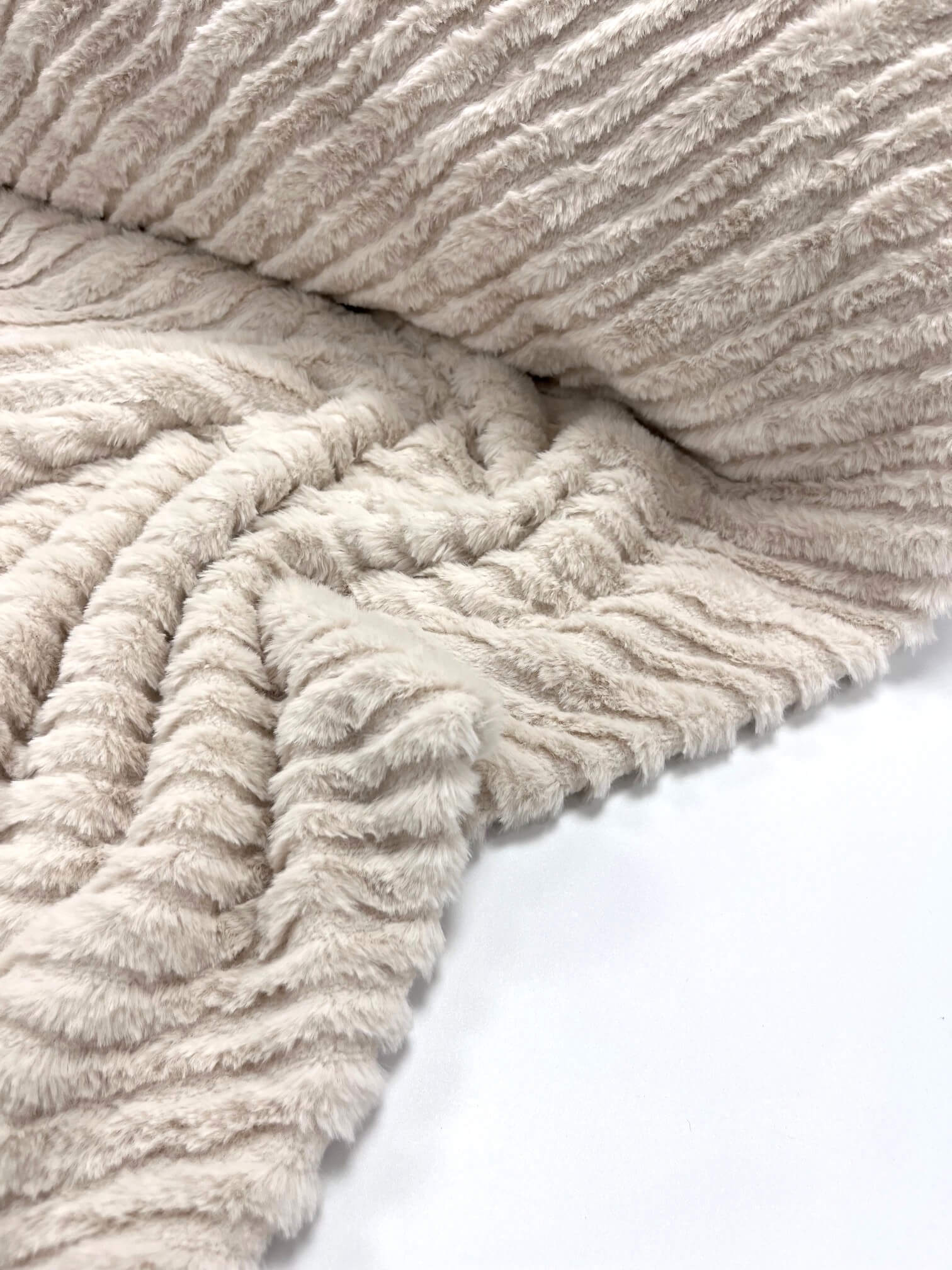 Dune Drift captures the gentle movement of wind-carved ridges on sun-lit dunes. Its rippled surface gives it a sculpted, dimensional look, while the warm beige tones keep it soothing and sophisticated. Incredibly soft to the touch with a subtle sheen that catches the light beautifully.