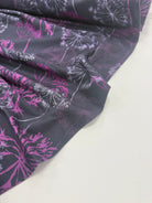 Twilight Meadow features delicate botanical silhouettes drifting across a charcoal backdrop in shades of plum, violet and soft lilac. The print has a dreamy, ethereal quality—like wildflowers swaying at dusk, caught in the last traces of evening light. Refined and atmospheric, it offers subtle drama without overwhelming.