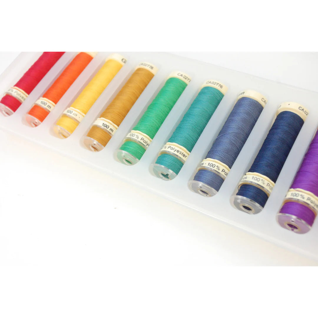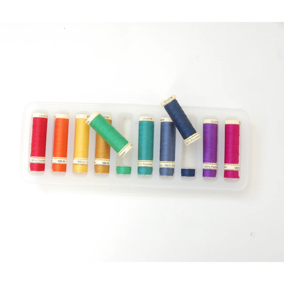 We ship on the 15th of the month. Sit back and wait for a box of gorgeous sewing goodies to arrive