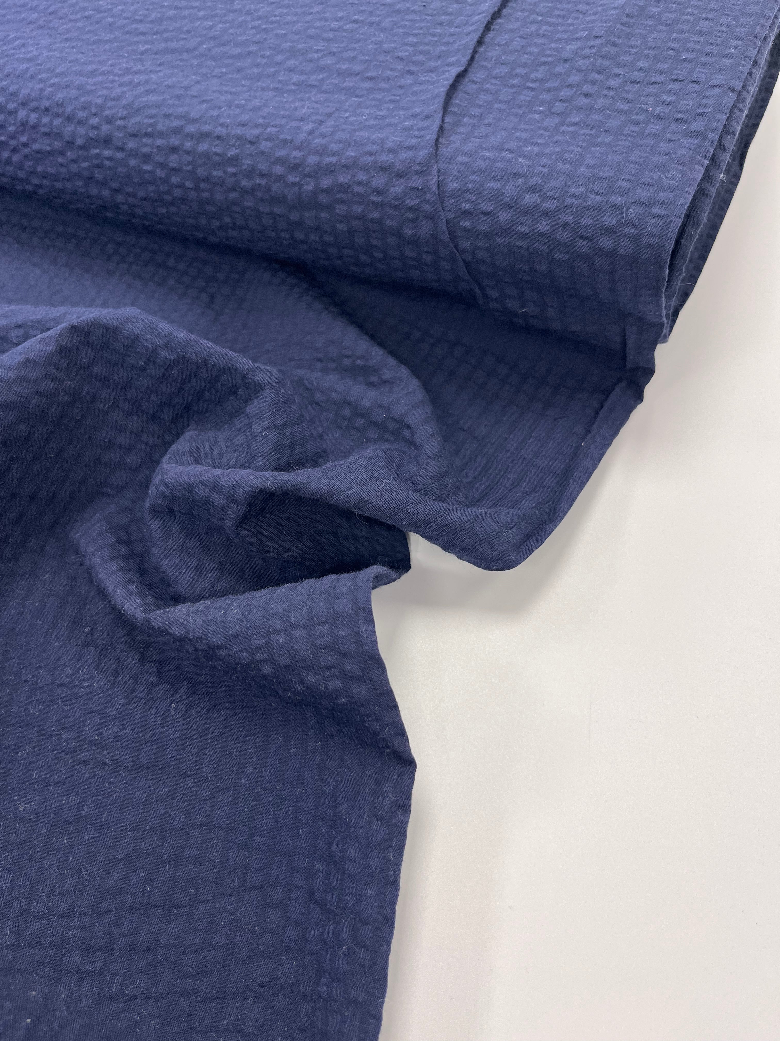 This is 100% cotton seersucker. It had a lovely textured striped appearance . It would make lovely cool summer tops or blouses. It would also work beautifully as a tiered skirt or dress.