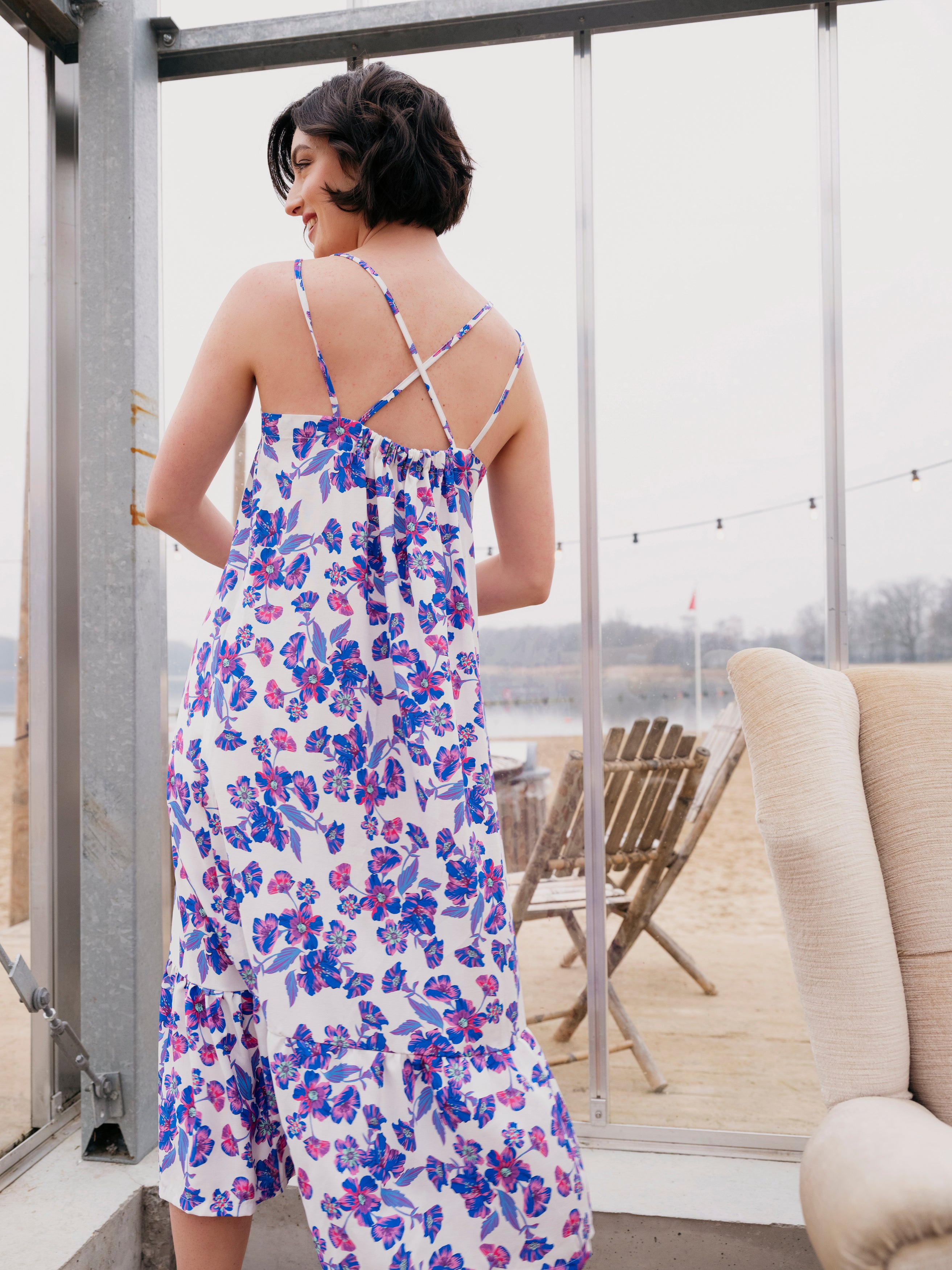 Summer vibes! That’s what our pattern Chloe gives you! Chloe is a sun dress with spaghetti shoulder straps and lots of possibilities to make the dress just the way you like it! You can add cross back straps, a small ruffle at the neckline and even a small belt. Or why not make the top version of this pattern, it’s perfect for those warm summer days!