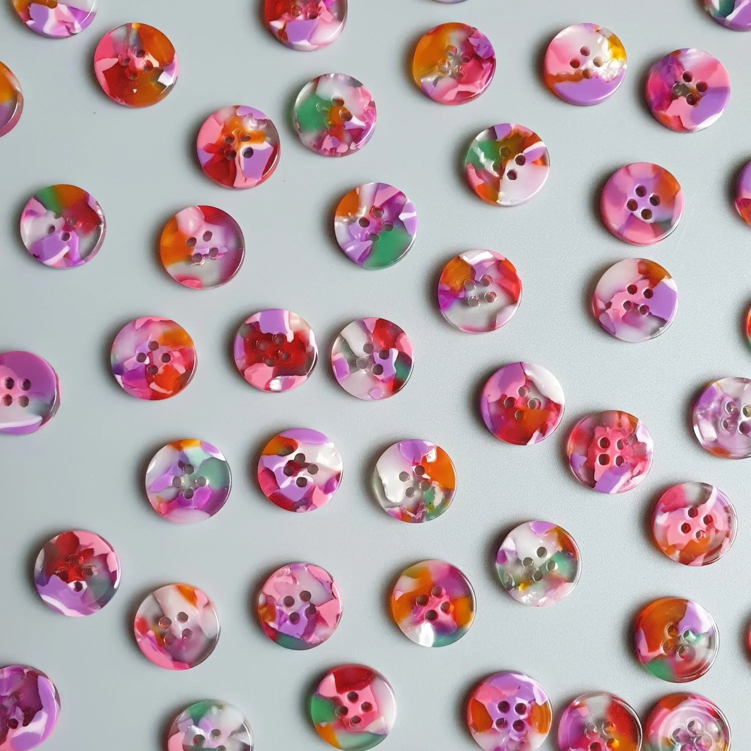 Made from bio resin these kinds of buttons are tough, glossy and have a smooth texture.