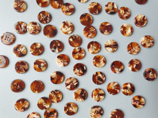 Made from bio resin these kinds of buttons are tough, glossy and have a smooth texture.