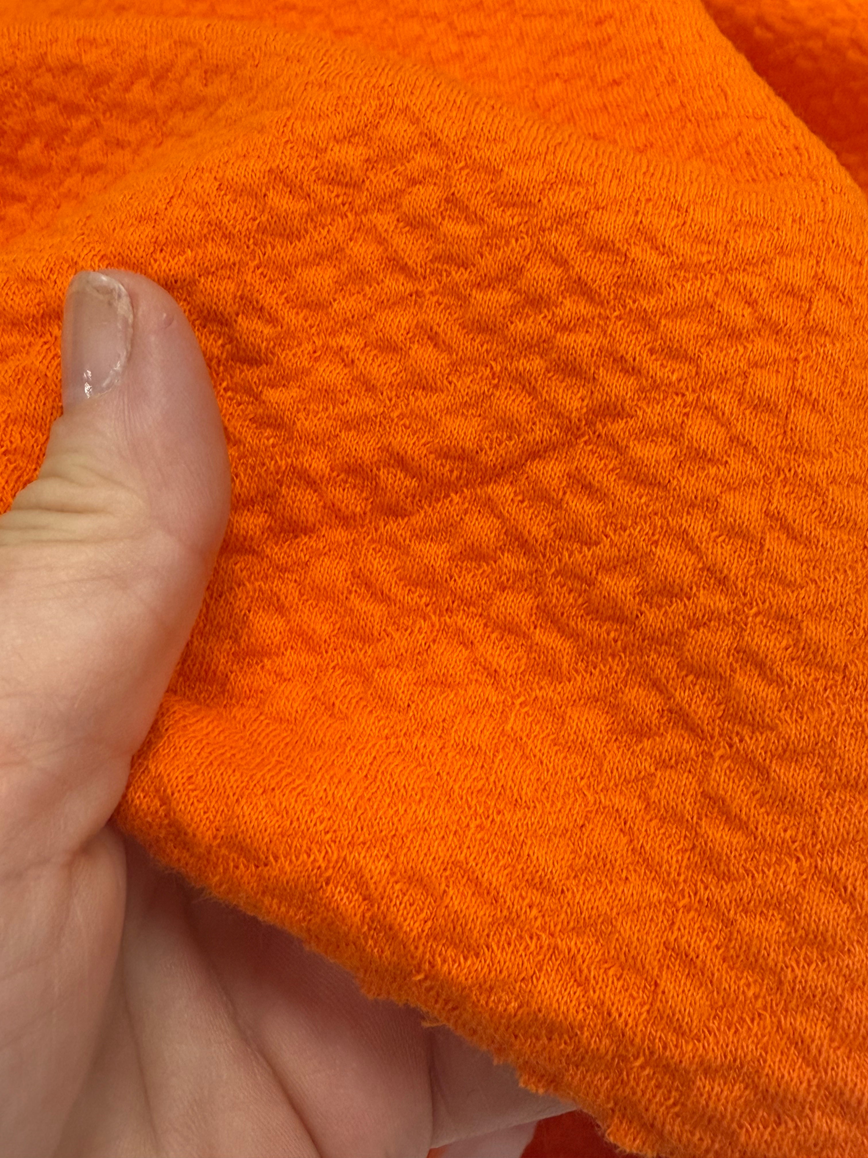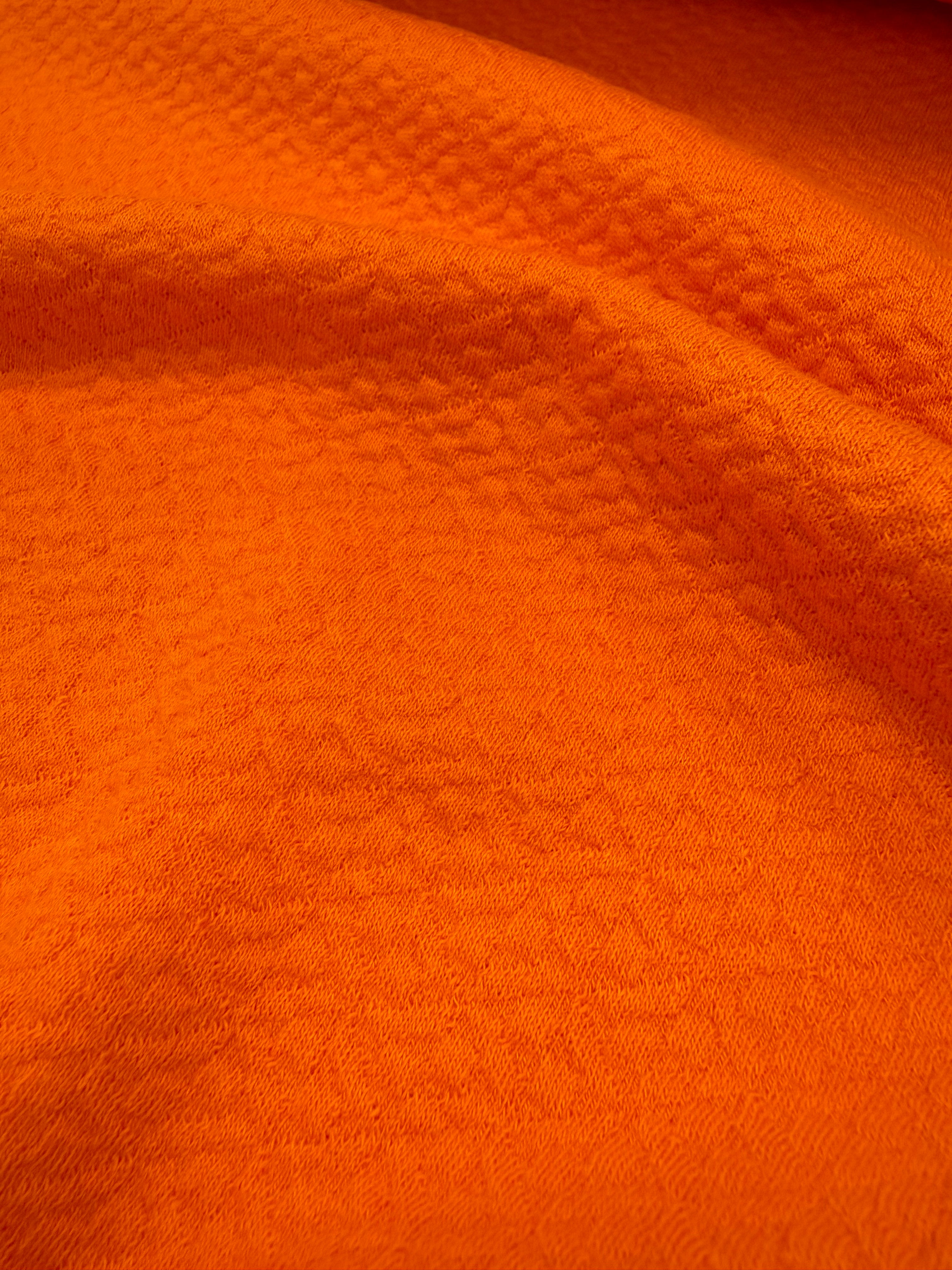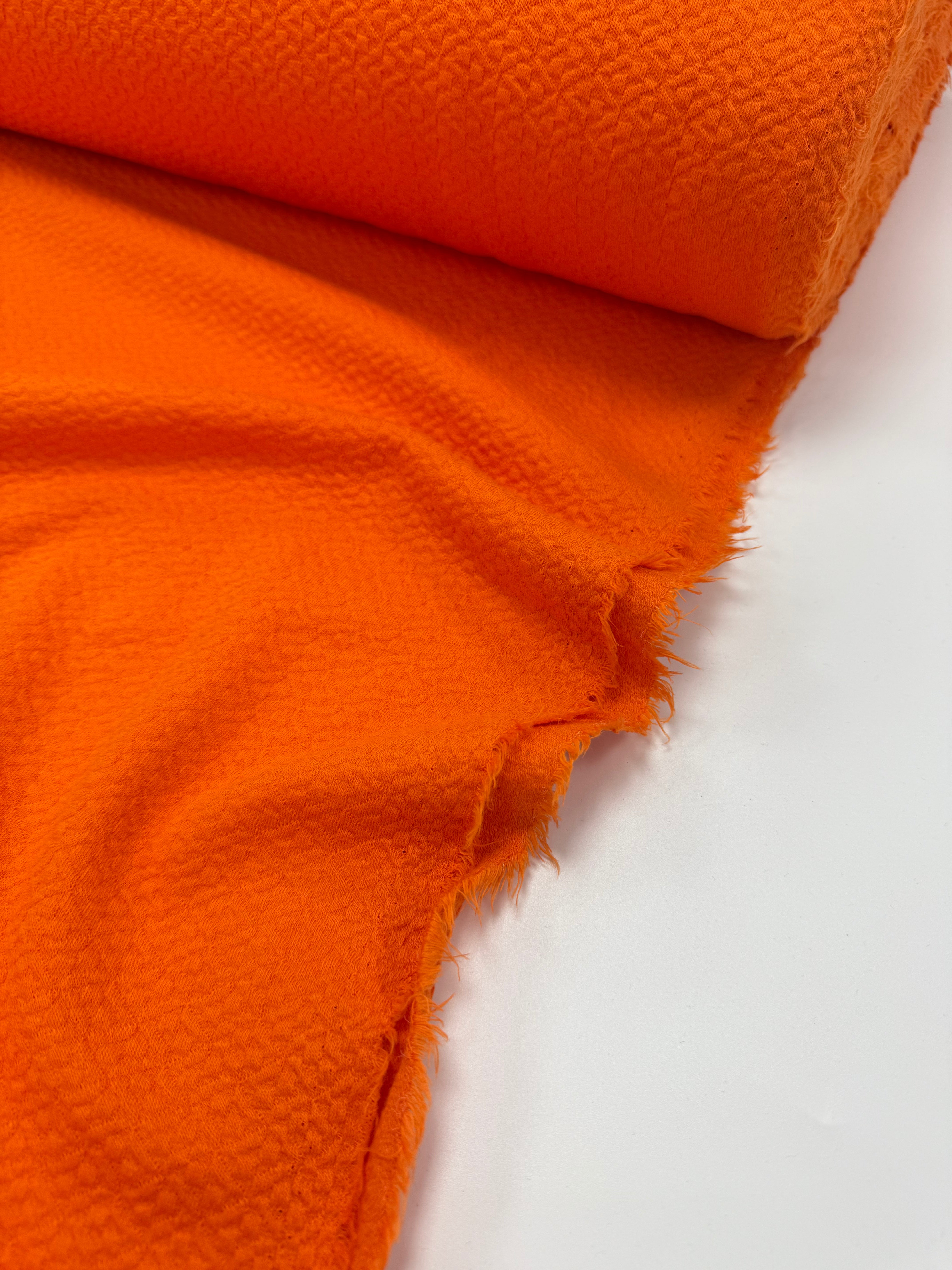 A beautifully soft and breathable cotton sweater knit available in four striking colourways: cobalt blue, pink red, deep black, and bold orange. Made from 95% cotton and 5% elastane, this fabric offers excellent stretch and recovery, making it ideal for comfort and movement. Its subtle textured surface adds interest and depth, while the medium weight makes it perfect for transitional cardigans, lightweight sweaters, and cozy layering pieces.