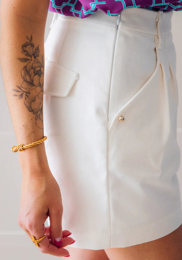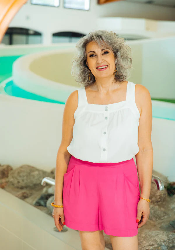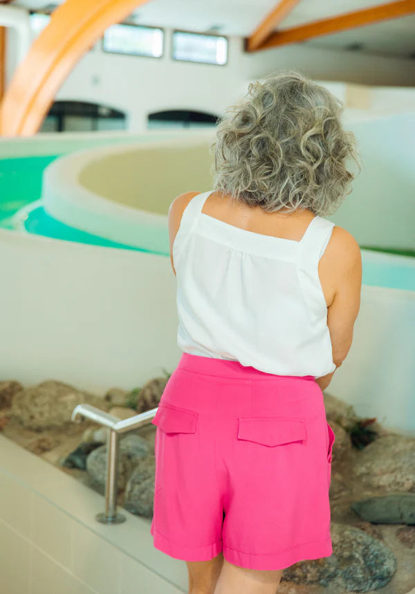 When summer is coming, we want to let our legs enjoy the sun. A pair of shorts with a perfect cut and studied details seems to be the perfect option... The GRAND BAIN shorts will be the ideal ally for all occasions: with a crazy elegance in tweed, with a touch of relaxation in cotton gabardine, light as a breath in a printed poplin, this pretty pattern will accompany you all summer!
