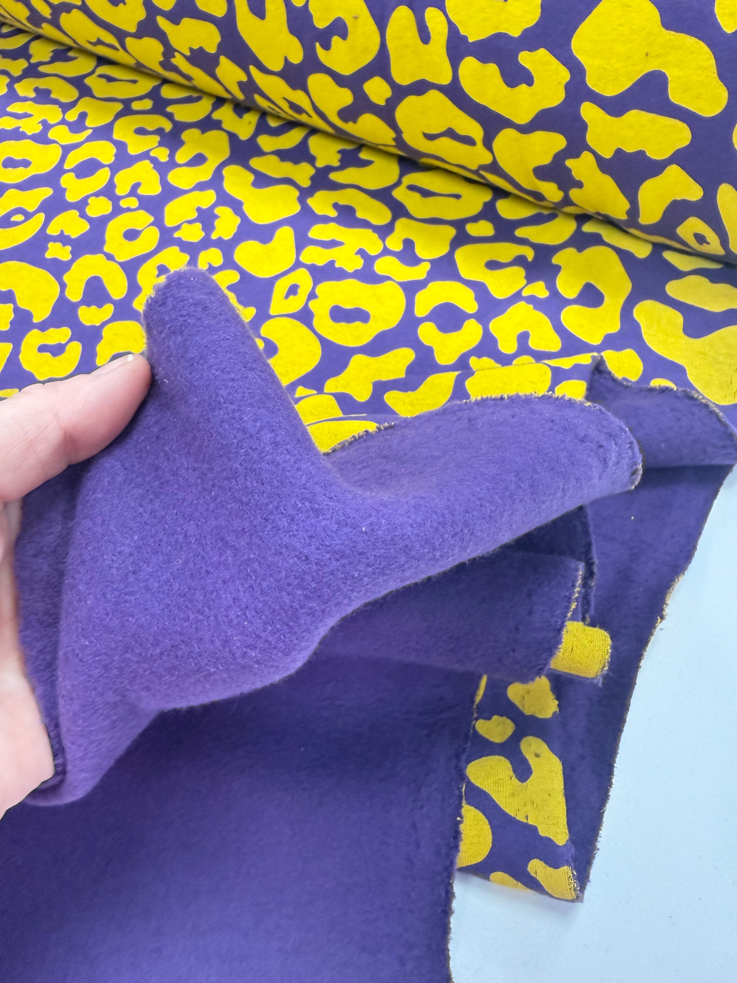 Introducing The Heavy Leo Collection — a bold, colour-driven lineup of double-face sweatshirtings that blend playful pattern with irresistible comfort. Crafted from a beautifully soft 80% cotton, 20% polyester blend, each colourway features an abstract, leopard-inspired design on the smooth outer face and a plush, fleecy reverse for warmth and cosiness.