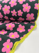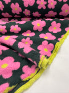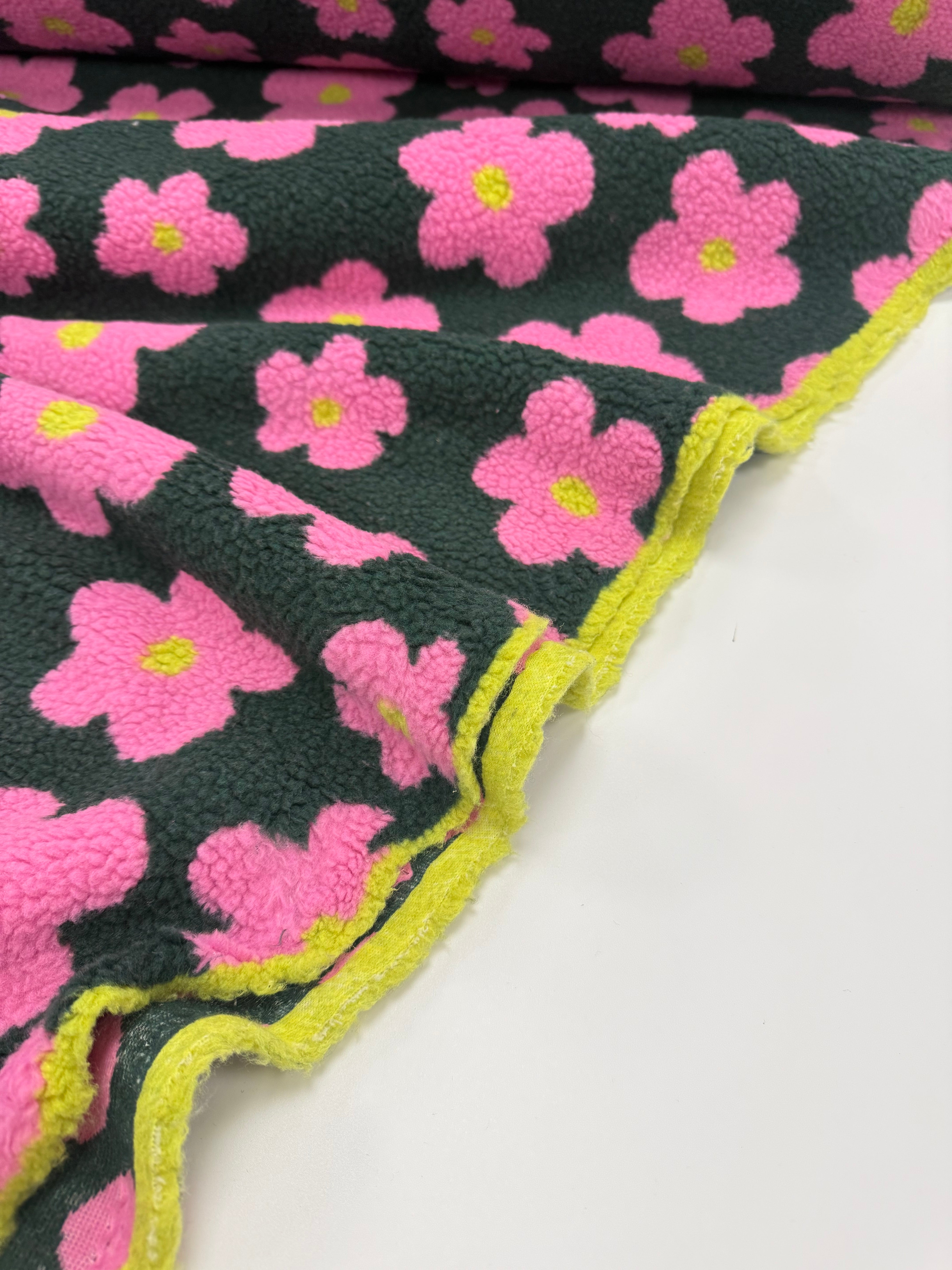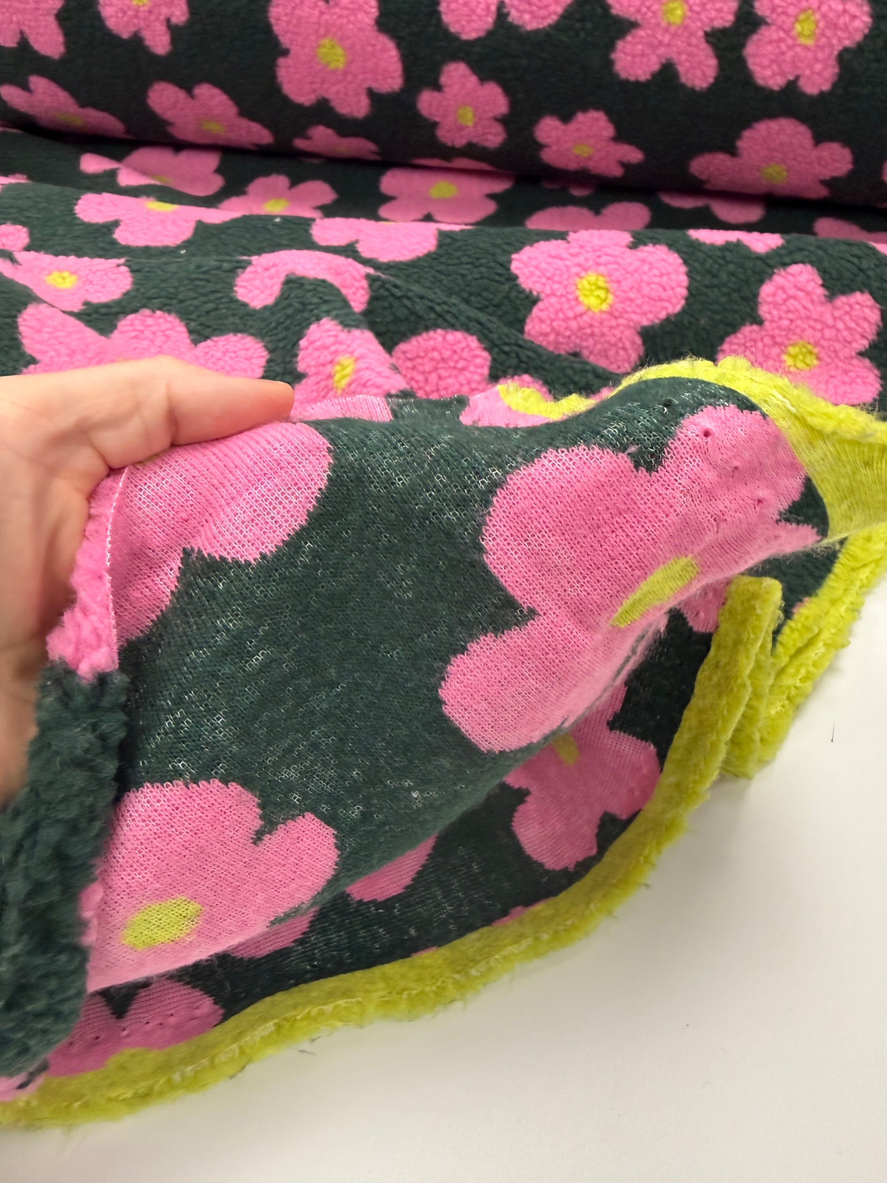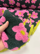 Retro Blooms | Teddy Fleece | Forest Green and pink